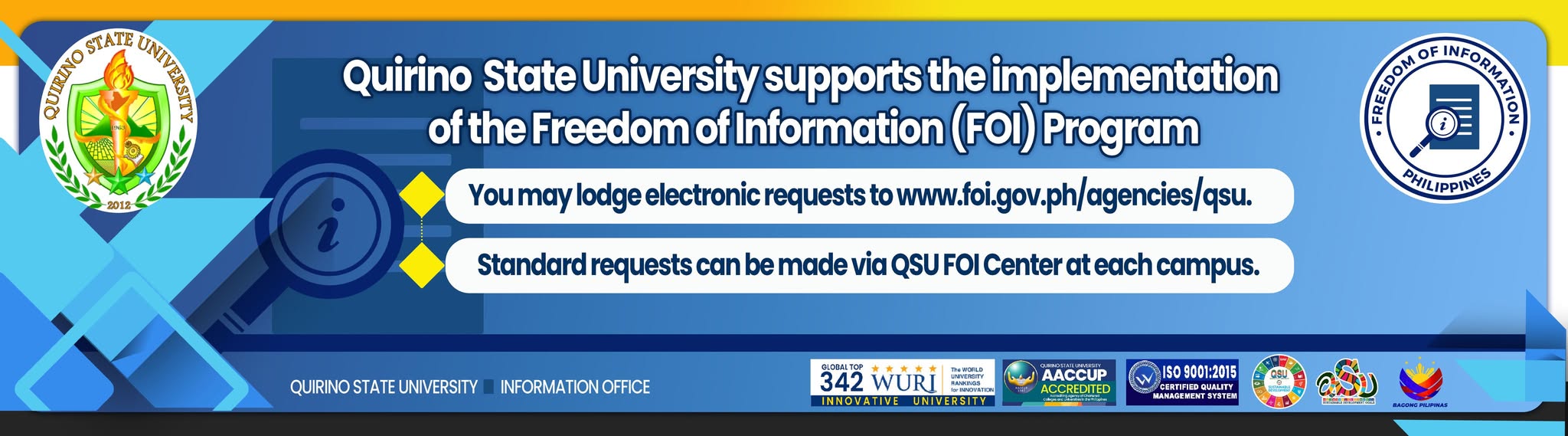Quirino State University welcomed officials from the Department of Information and Communications Technology (DICT) โ Quirino today, January 15, 2026 for the formal awarding of the Digital Excellence Award and the Education and Digital Transformation Award to the institution for its outstanding initiatives. Ms. Virginia C. Baculi, DICT Provincial Officer, and Mr. Exen Bantiyan Claro, continue reading : ๐๐๐ ๐ก๐จ๐ง๐จ๐ซ๐๐ ๐ฐ๐ข๐ญ๐ก ๐๐ฐ๐๐ซ๐๐ฌ ๐๐จ๐ซ ๐๐ฑ๐๐๐ฅ๐ฅ๐๐ง๐๐ ๐ข๐ง ๐๐ข๐ ๐ข๐ญ๐๐ฅ ๐๐๐ฎ๐๐๐ญ๐ข๐จ๐ง ๐๐ง๐ ๐ญ๐ซ๐๐ง๐ฌ๐๐จ๐ซ๐ฆ๐๐ญ๐ข๐จ๐ง