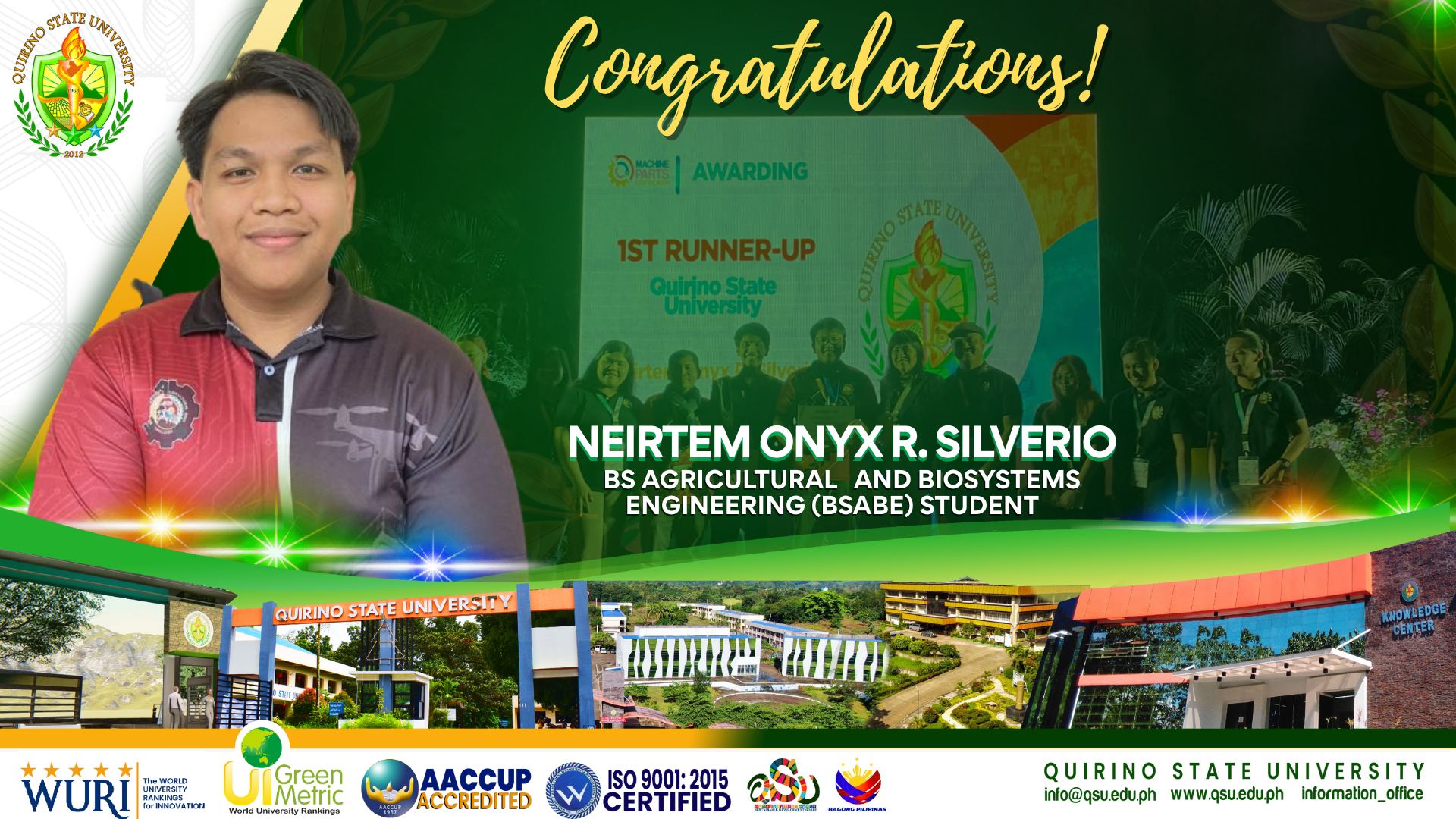 Mr. Neirtem Onyx R. Silverio, a student from Quirino State University-Diffun Campus, earned the First Runner-Up spot in the Engine and Agricultural Machinery Parts Identification Competition during the PABEStigan XII. This national event was held on January 23 to 25, 2026 at the University of the Philippines Los Baรฑos (UPLB), Laguna. Organized by the UP continue reading : ๐๐๐-๐๐ข๐๐๐ฎ๐งโ๐ฌ ๐๐๐๐๐ ๐ฉ๐ซ๐ข๐๐ ๐ญ๐ซ๐ข๐ฎ๐ฆ๐ฉ๐ก๐ฌ ๐๐ญ ๐๐๐๐๐๐ญ๐ข๐ ๐๐ง ๐๐๐ ๐ข๐ง ๐๐๐๐