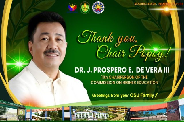 The University expresses its profound gratitude to Dr. J. Prospero “Popoy” De Vera III for his exceptional leadership and dedicated service as CHED Chairperson.