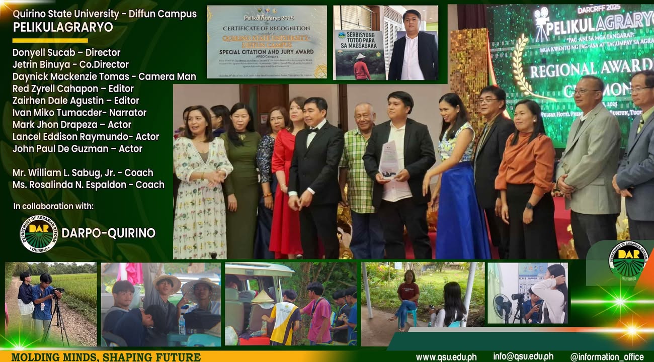 The University’s film, “Sersbisyong Totoo para sa Magsasaka,” won Third Best Film and received a Special Citation and Jury Award at the PelikulAgrary 2025 Regional Film Festival-Agrarian Reform Beneficiary Organizations (ARBO) Category. The festival was held on June 28 at the Pulsar Hotel Premier Suites in Buntun, Tuguegarao City.
