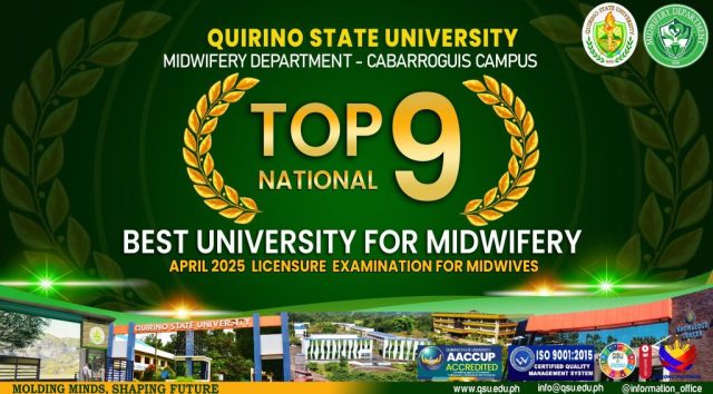 We also commend the QSU Cabarroguis Midwifery Department for providing excellent guidance and mentorship during your academic journey. Your collective efforts propelled the program to achieve this remarkable success and further solidify its reputation for producing highly qualified midwifery professionals.