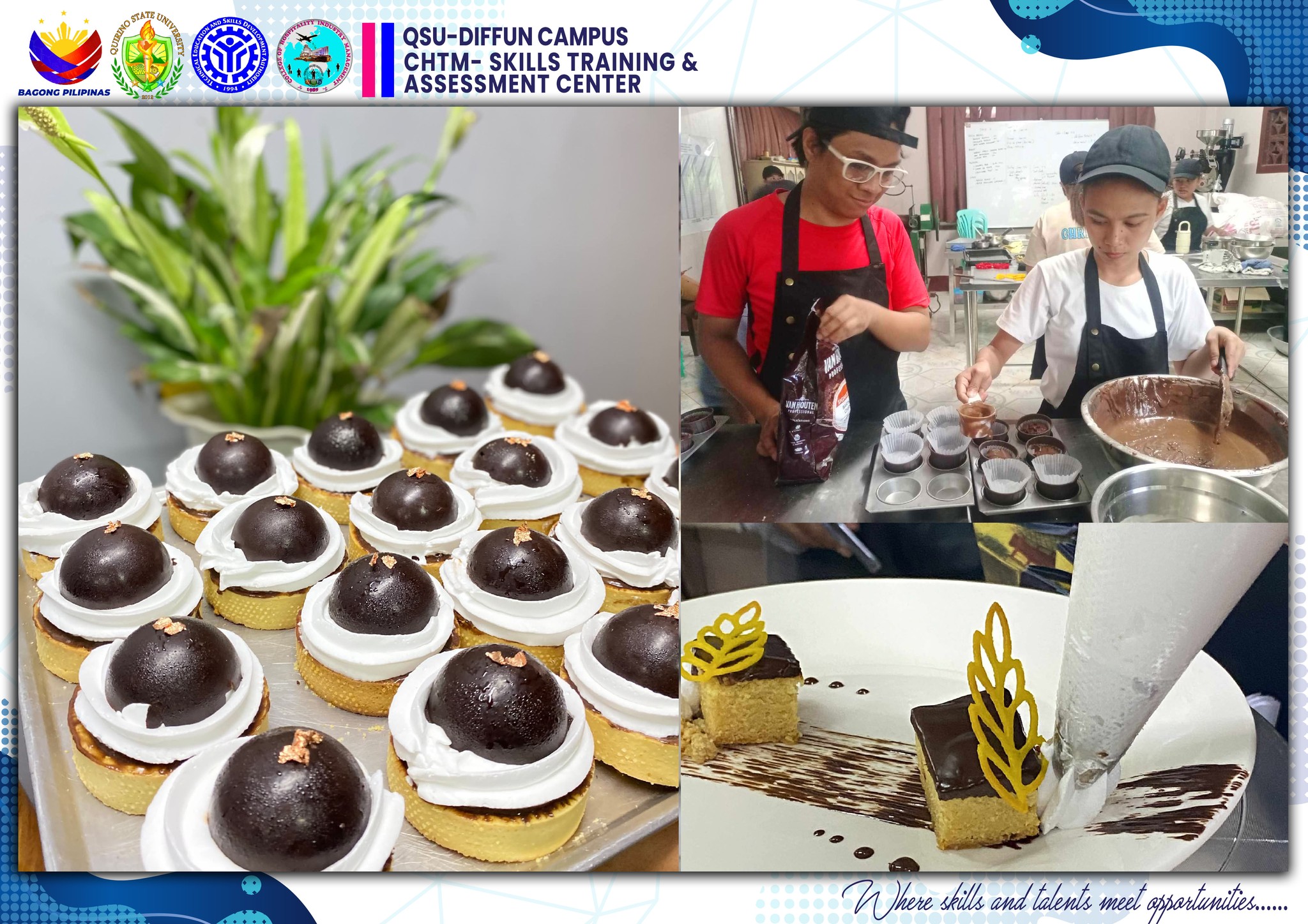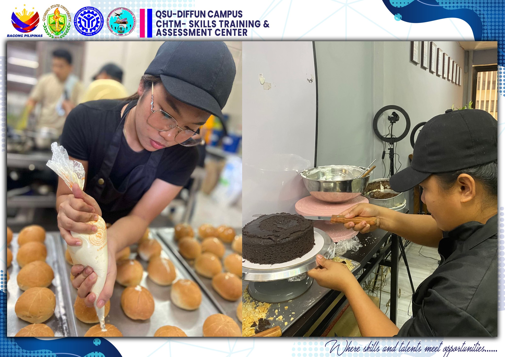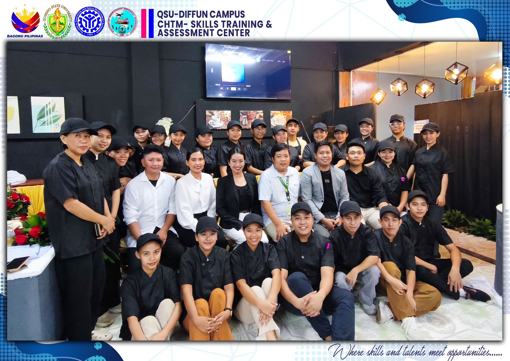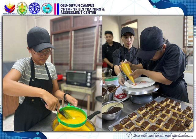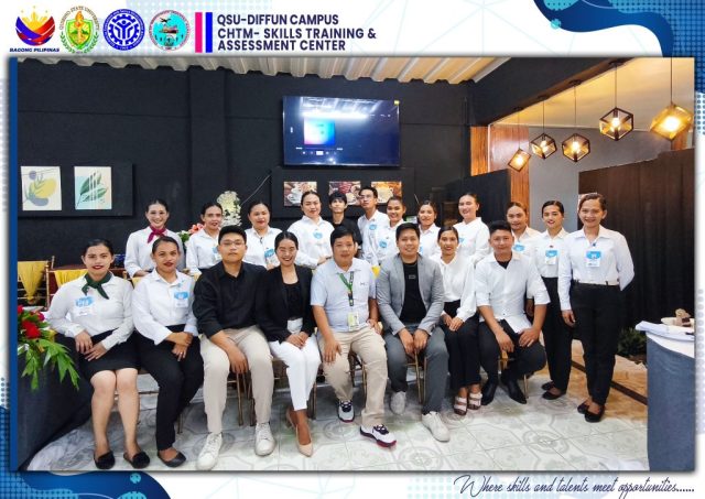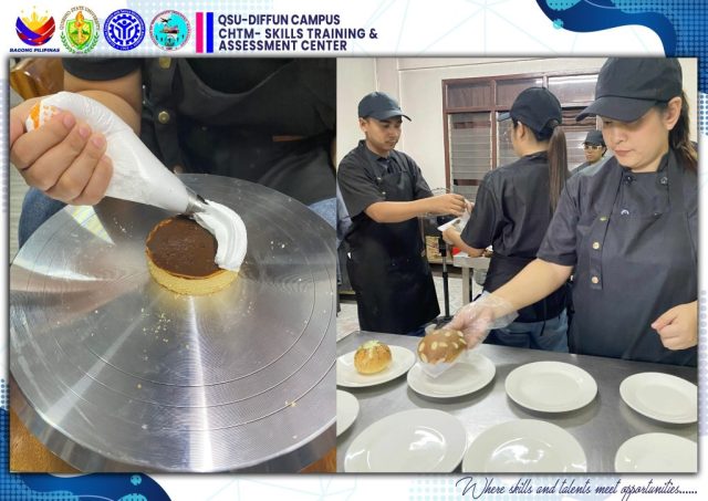 The University’s Skills Training and Assessment Center (QSU-STAC), in partnership with the Technical Education and Skills Development Authority (TESDA), held a joint culminating activity for its 43 scholars training under Food and Beverage Services NC II (FBS) and Bread and Pastry Production NC II (BPP) yesterday, June 5 at the Sip N’ Think Cafe, Diffun Campus.