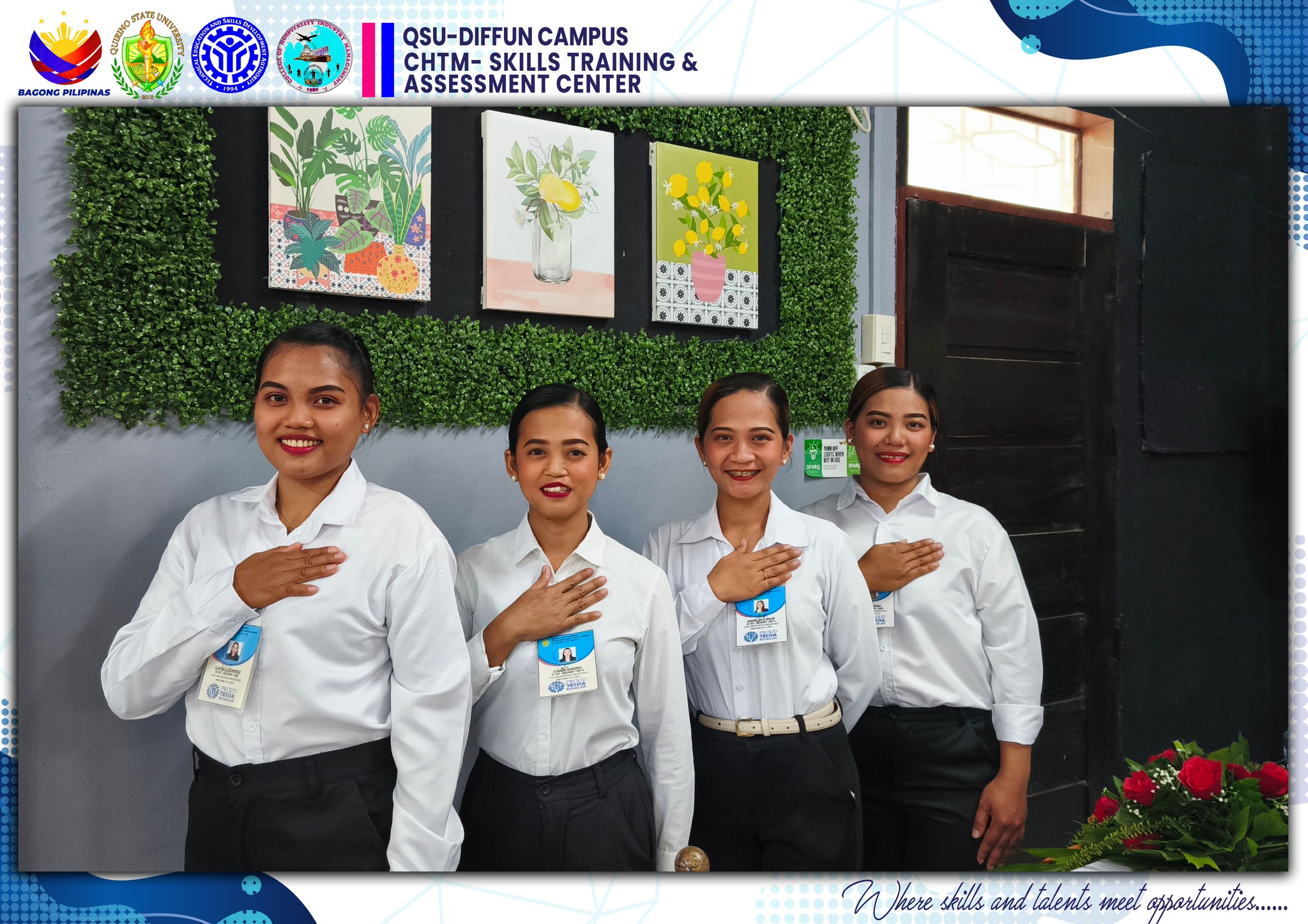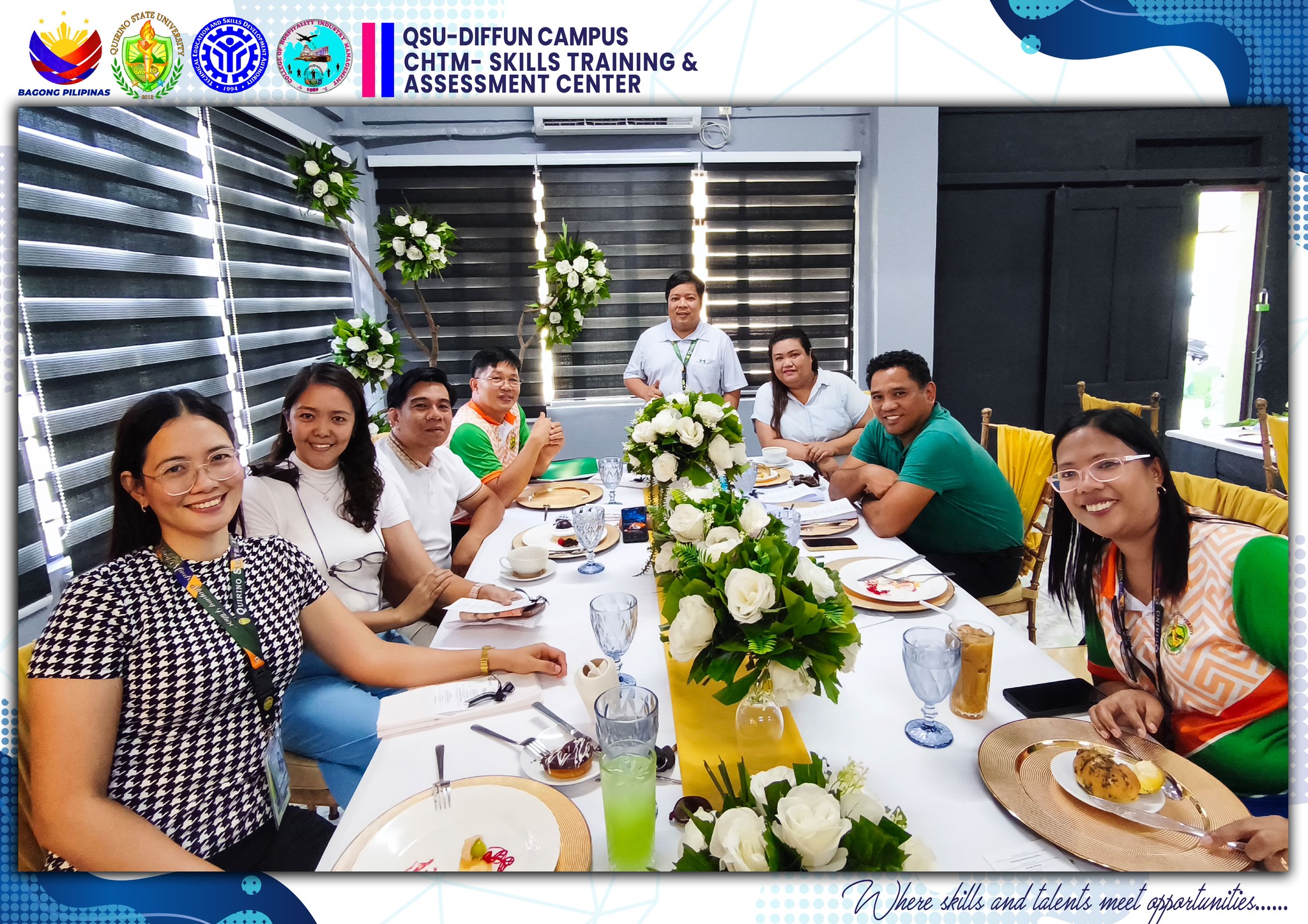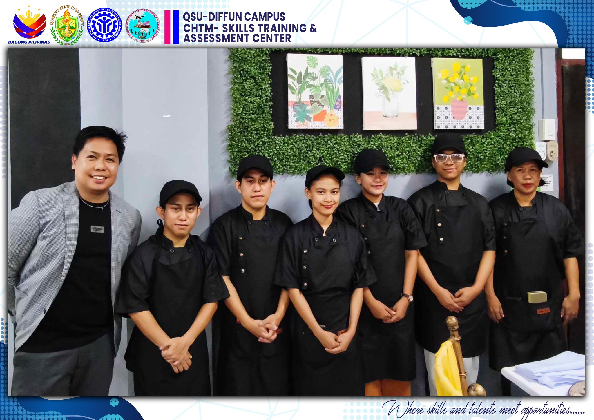 The University’s Skills Training and Assessment Center (QSU-STAC), in partnership with the Technical Education and Skills Development Authority (TESDA), held a joint culminating activity for its 43 scholars training under Food and Beverage Services NC II (FBS) and Bread and Pastry Production NC II (BPP) yesterday, June 5 at the Sip N’ Think Cafe, Diffun Campus.