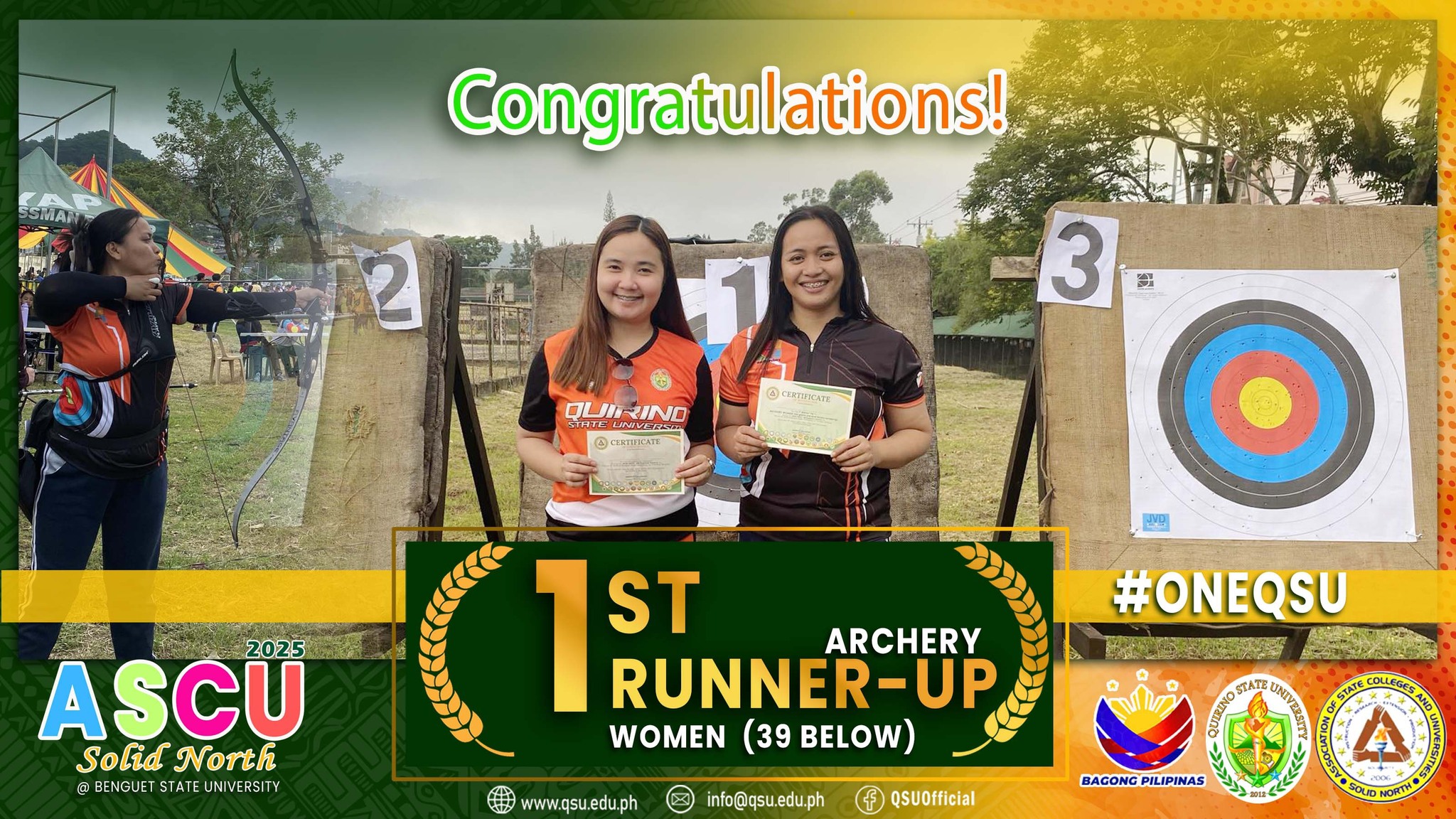Ms. Edralyn G. Carillo secured 1st runner-up in Women’s Archery, while Ms. Geraldine T. Fernando was a finalist. In the Shot Put -Men’s category (29 below), Mr. Sherwin A. Eugenio claimed 2nd runner-up.