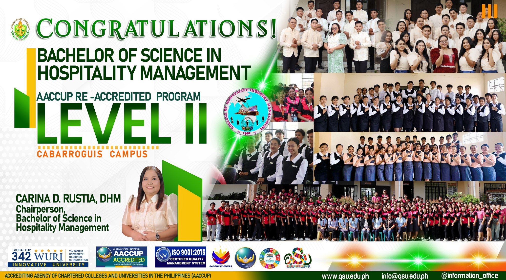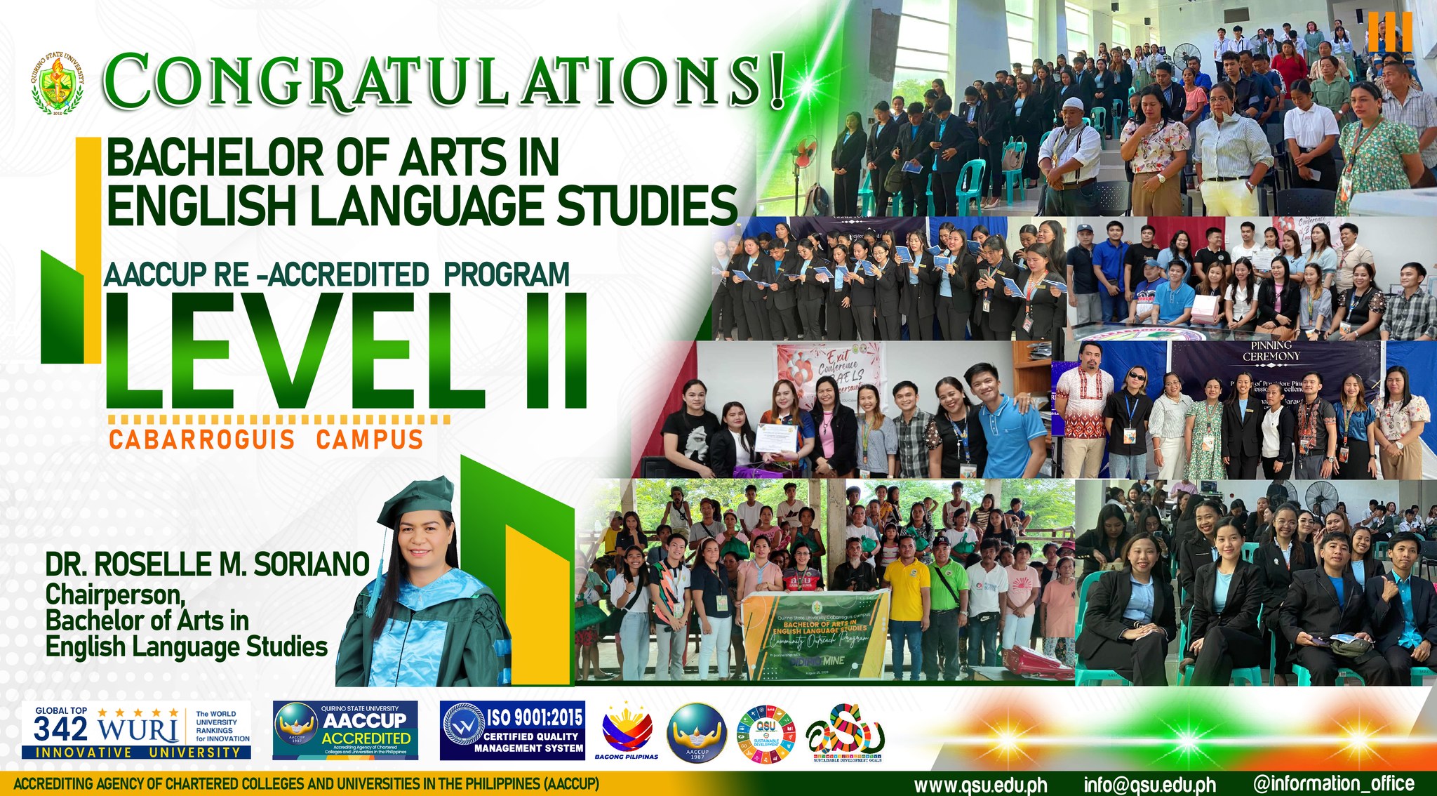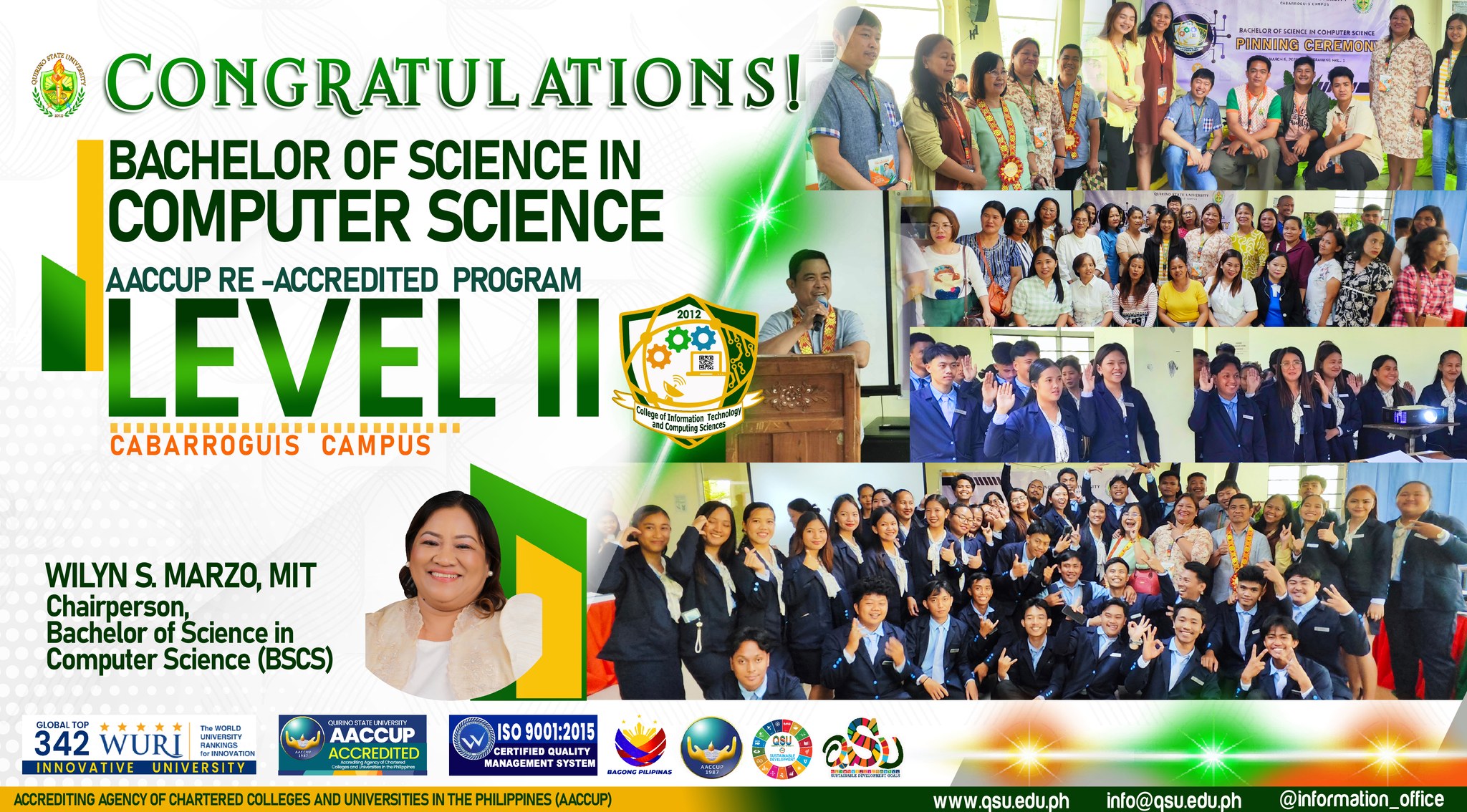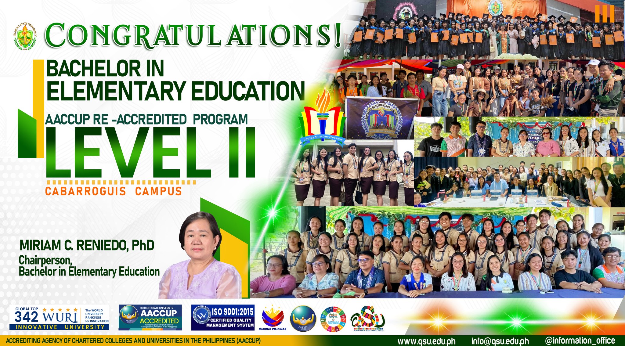 I am filled with immense pride and gratitude as we celebrate a crucial breakthrough for our institution: the successful re-accreditation of our various academic programs by the Accrediting Agency of Chartered Colleges and Universities in the Philippines (AACCUP). This achievement is a clear indication of our collective dedication to excellence and our sustained pursuit of quality education.