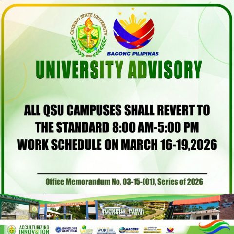 His Excellency President Ferdinand R. Marcos, Jr. has declared March 20, 2026, as a Regular Holiday in observance of Eid’l Fitr. In view of this, all campuses of the University shall revert to the standard 8-hour work schedule, 𝟖:𝟎𝟎 𝐀𝐌 𝐭𝐨 𝟓:𝟎𝟎 𝐏𝐌, 𝐟𝐨𝐫 𝐭𝐡𝐞 𝐩𝐞𝐫𝐢𝐨𝐝 𝐌𝐚𝐫𝐜𝐡 𝟏𝟔-𝟏𝟗, instead of adhering to the 10-hour compressed workweek schedule.