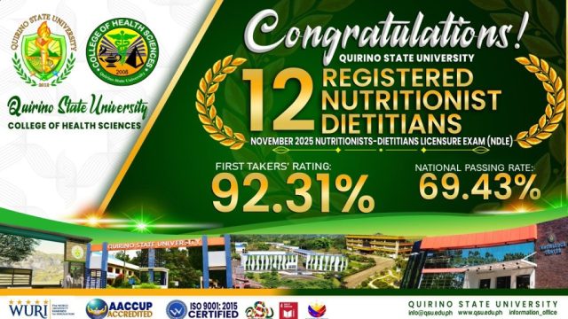 Dr. Hermenegildo F. Samoy, Jr., President, and the University community extend their warmest congratulations to the 12 new Registered Nutritionist-Dietitians (RNDS)! Your hard work and dedication have brought immense pride to QSU.