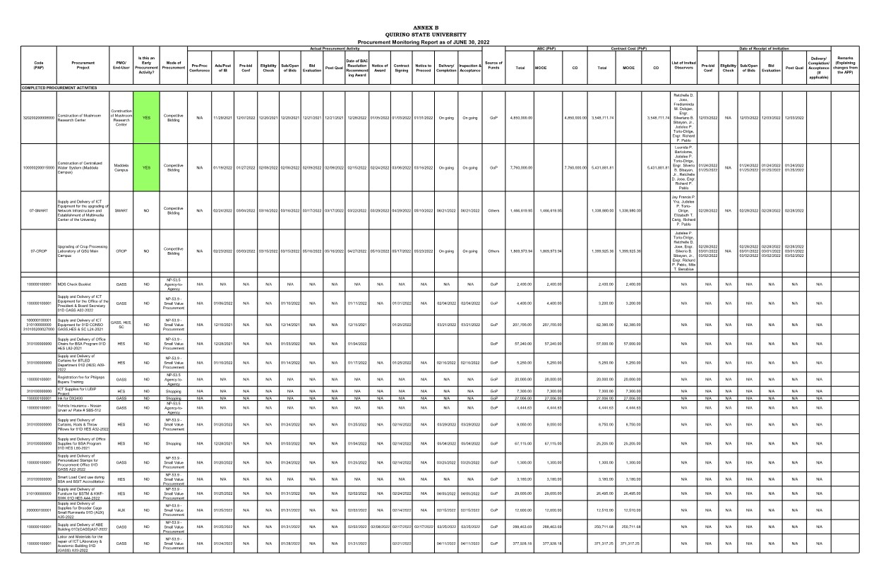 Declaration of Failure of Bidding – Supply & Delivery of ICT Supplies & Equipment for the Upgrading of Network Infrastructure & Establishment of Multimedia Center of Quirino State University Posted on June 17, 2022