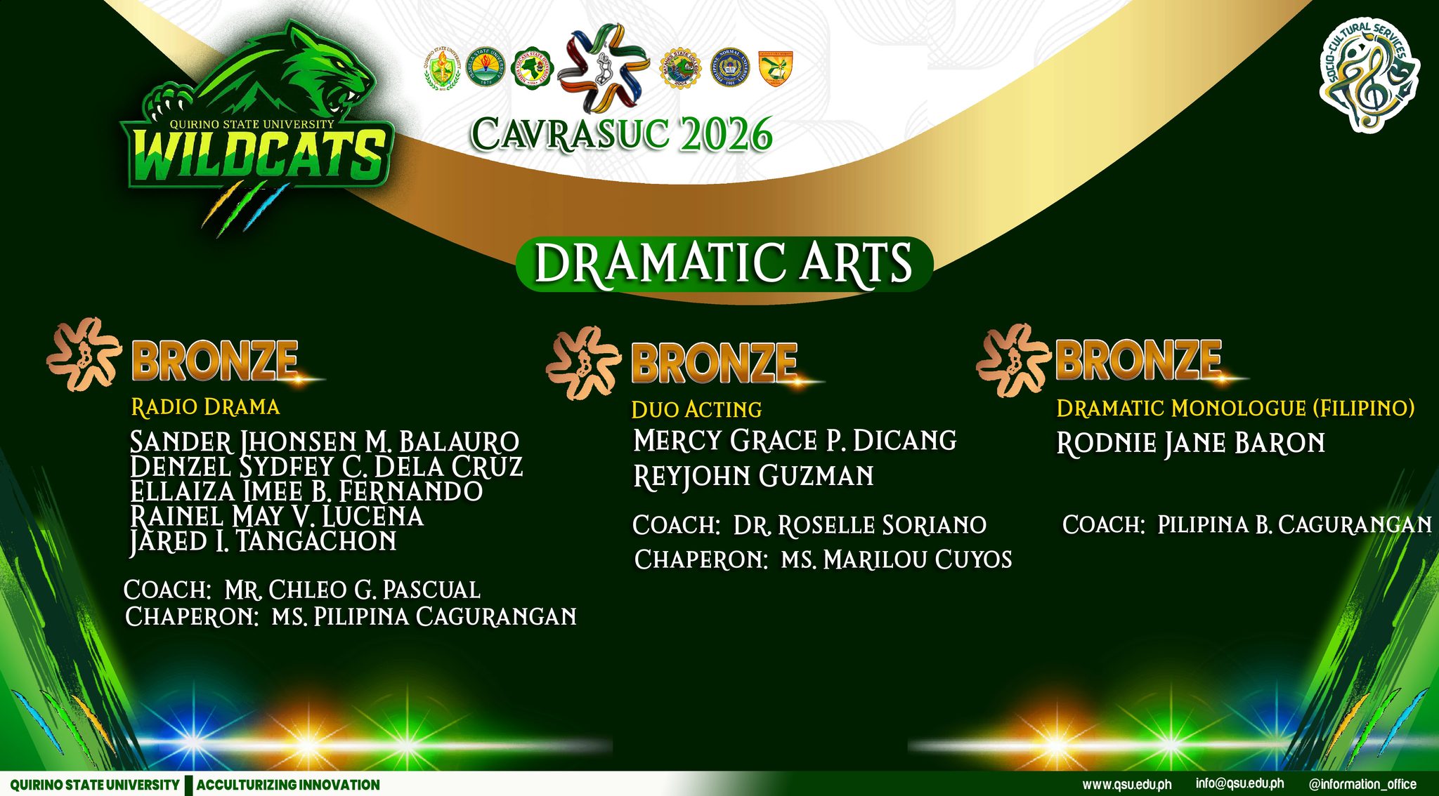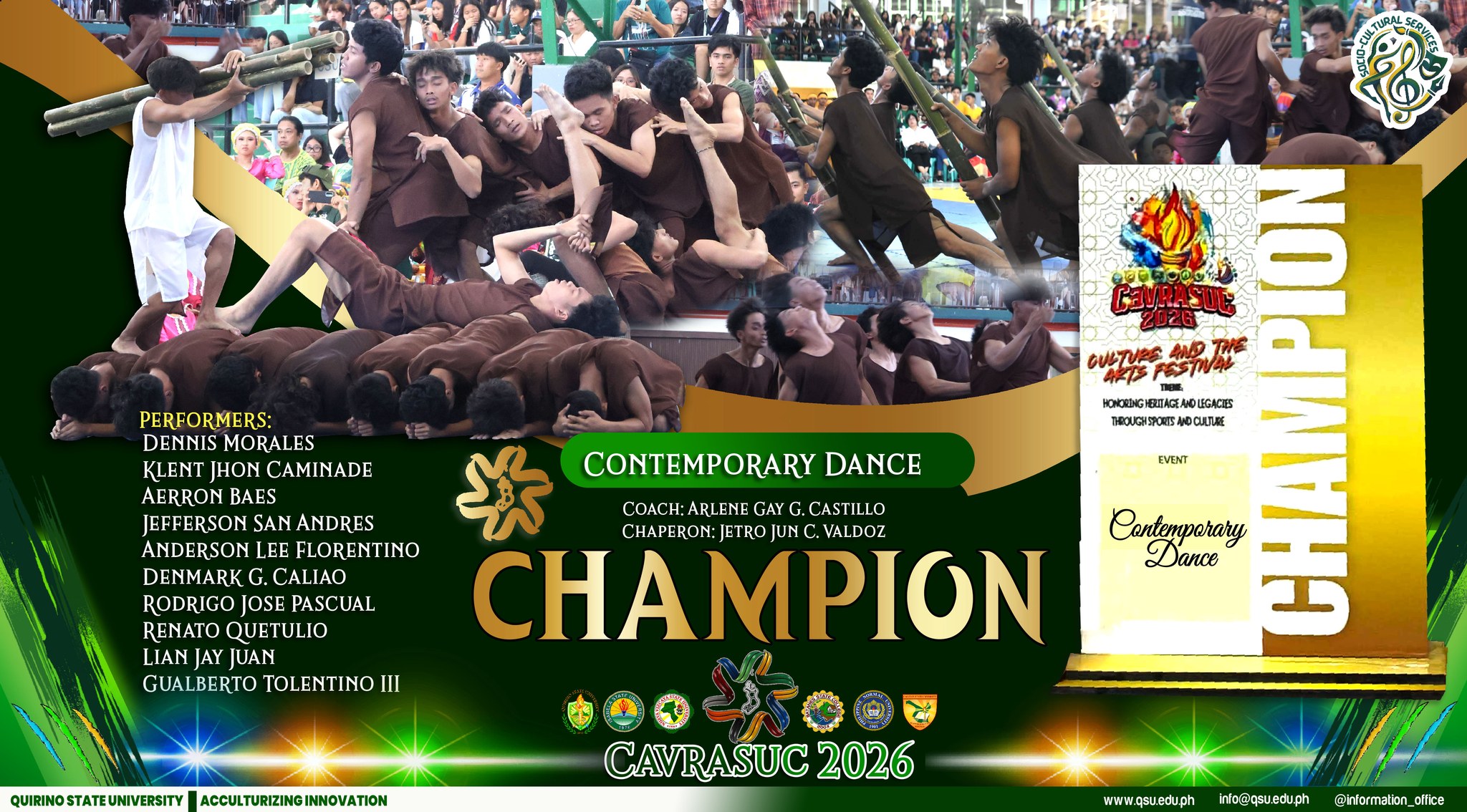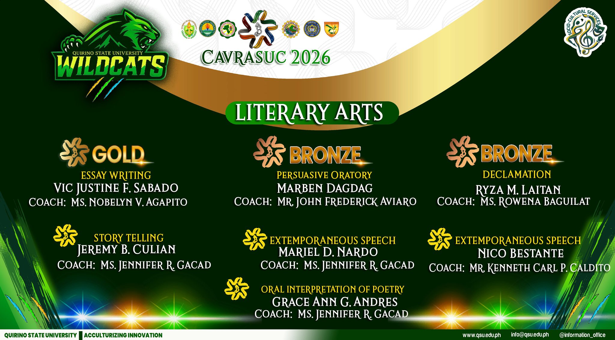 The Wildcats delegation demonstrated remarkable talent, creativity, and dedication in various competitions. Their efforts resulted in several notable recognitions, with the team emerging as champions in Essay Writing, Contemporary Dance (Group), Pandalawahang Pag-arte (Duo Acting), and Dramatic Monologue.