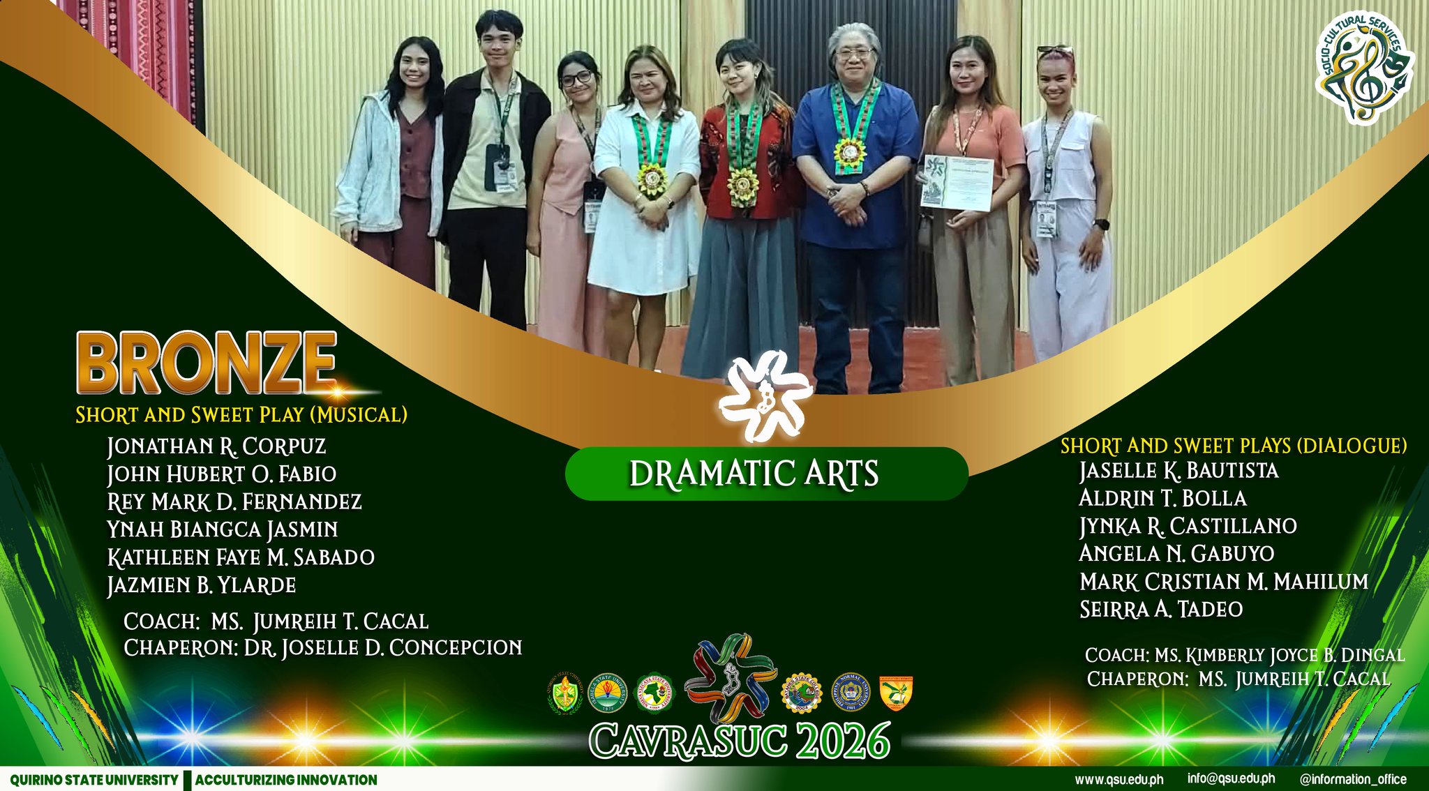 Finally, warmest congratulations and thank you to all performers, artists, coaches, and representatives across competing events from the three campuses who represented the University with pride and honor! Kudos for a job well done.
