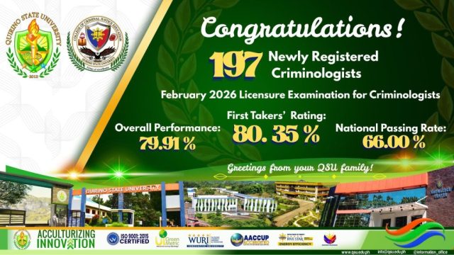 The institution’s performance stands out with an 80.35% passing rate for first-time takers and an overall passing rate of 79.91%, both substantially higher than the national passing rate of 66%. This year’s performance reflects the culture of discipline and excellence fostered within the College of Criminal Justice Education (CCJE). From intensive mock board examinations to specialized trainings, the program’s comprehensive approach to student development continues to set a high standard for criminology programs in the region. This achievement proves that the University is a premier breeding ground for the nation’s future protectors.