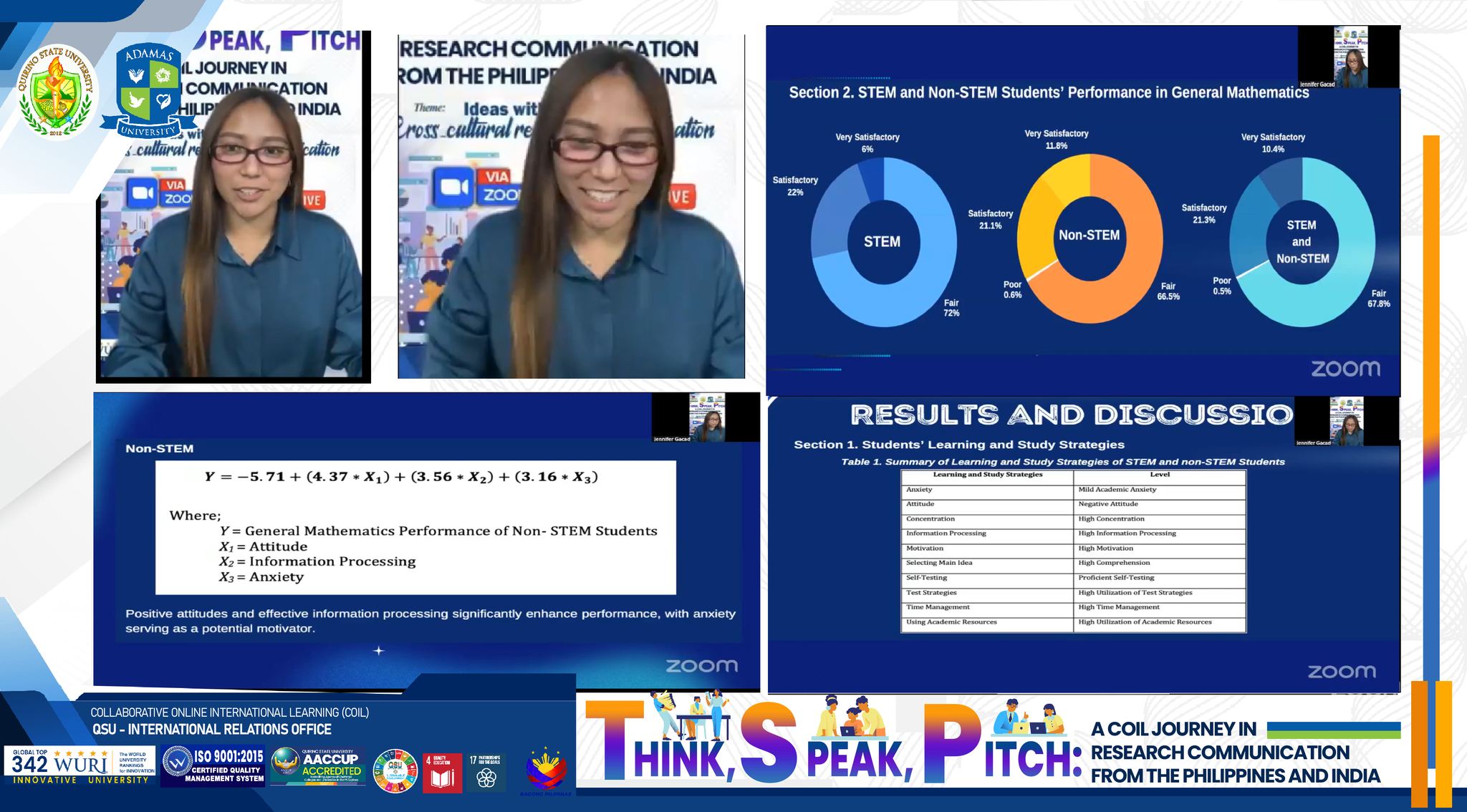 β’Ms. Jennifer R. Gacad (QSU): “STEM and Non-STEM Studentsβ Model of Learning and Study Strategies, and General Mathematics Performance”