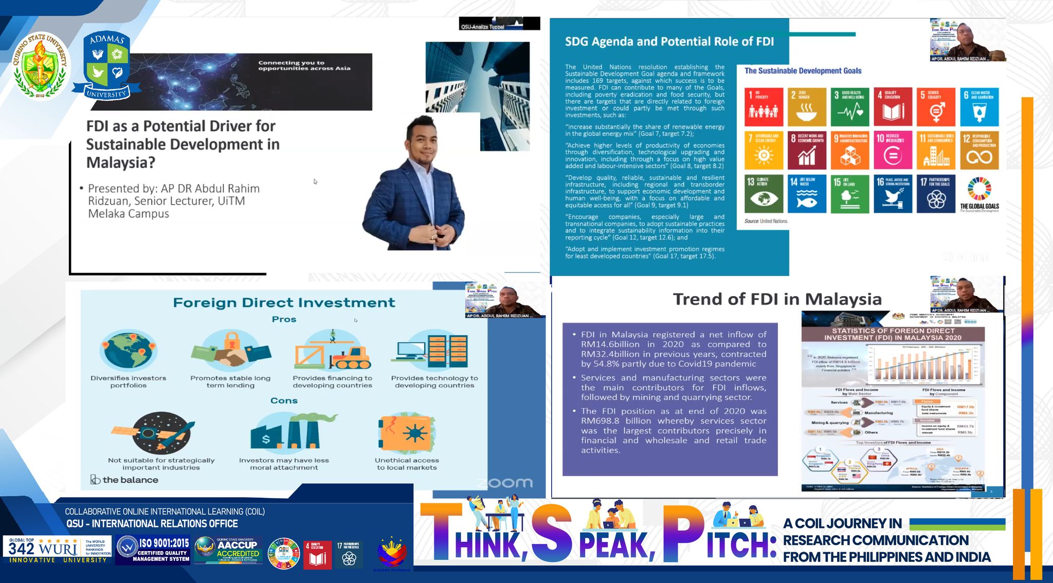 β’Dr. Abdul Rahim Ridzuan (Universiti Teknologi Mara -Melaka, Malaysia): “FDI as a Potential Driver for Sustainable Development in Malaysia?”