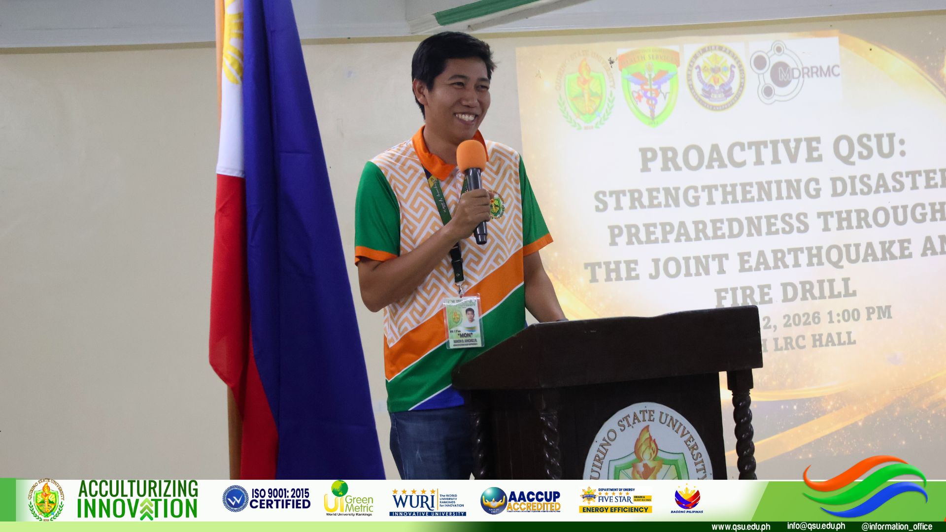 The University partnered with the Bureau of Fire Protection (BFP) Diffun Fire Station and the Municipal Disaster Risk Reduction and Management Office (MDRRMO-Diffun) to conduct a joint earthquake and fire drill today, March 12, 2026 at the JAA Building, Diffun Campus. The initiative sought to strengthen the disaster preparedness and emergency response of the University.