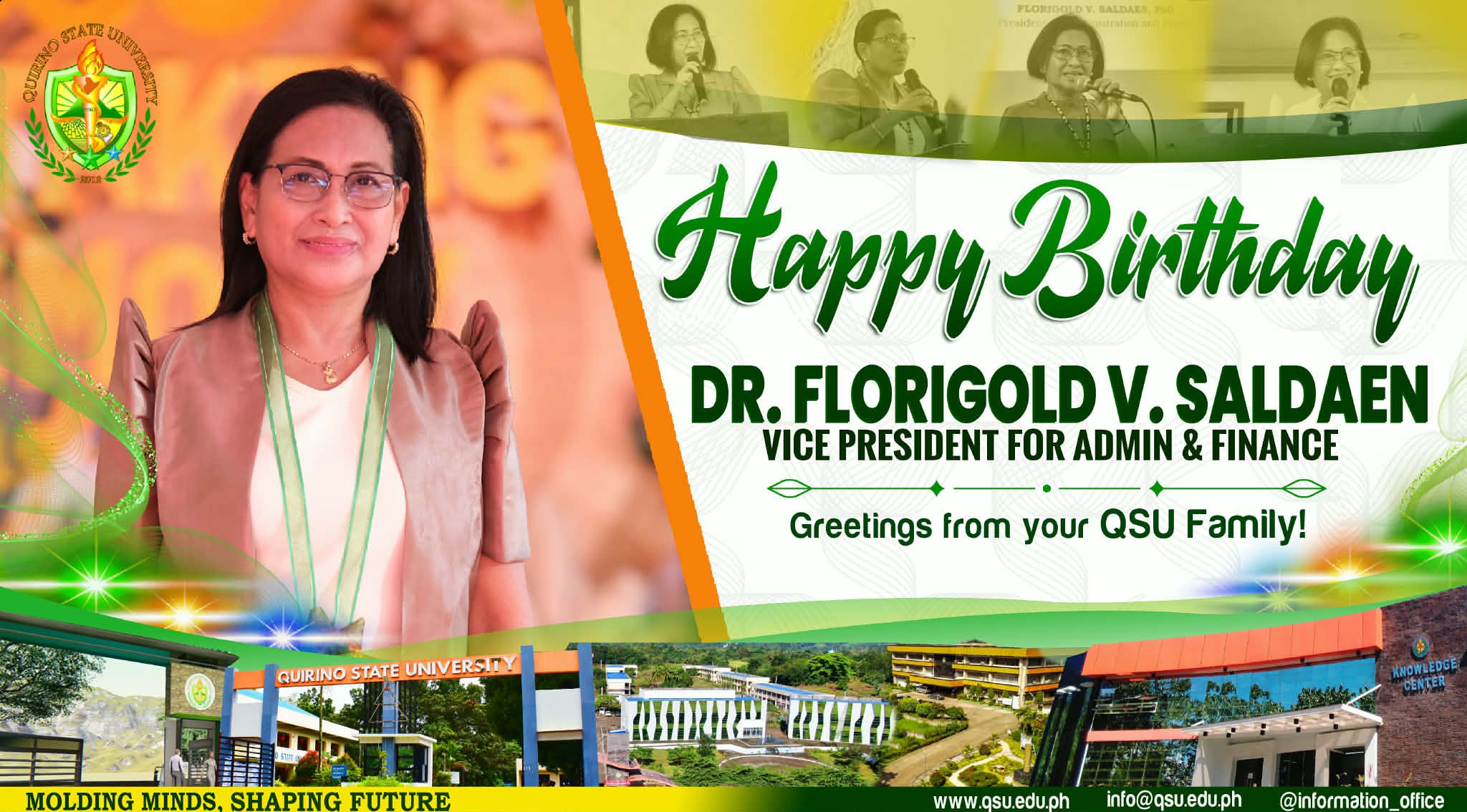 โAs Quirino State University’s Vice President for Administration and Finance (VPAF) and Quality Management Representative (QMR), Dr. Florigold V. Saldaen has successfully steered the University toward ISO certification, ensuring that institutional processes meet international standards. Collaborating closely with the top management, she oversees financial and administrative operations with remarkable dedication. Most notably, her proactive approach continue reading : ๐๐๐ฉ๐ฉ๐ฒ ๐๐ข๐ซ๐ญ๐ก๐๐๐ฒ, ๐๐ ๐ ๐ฅ๐จ๐ซ๐ข!