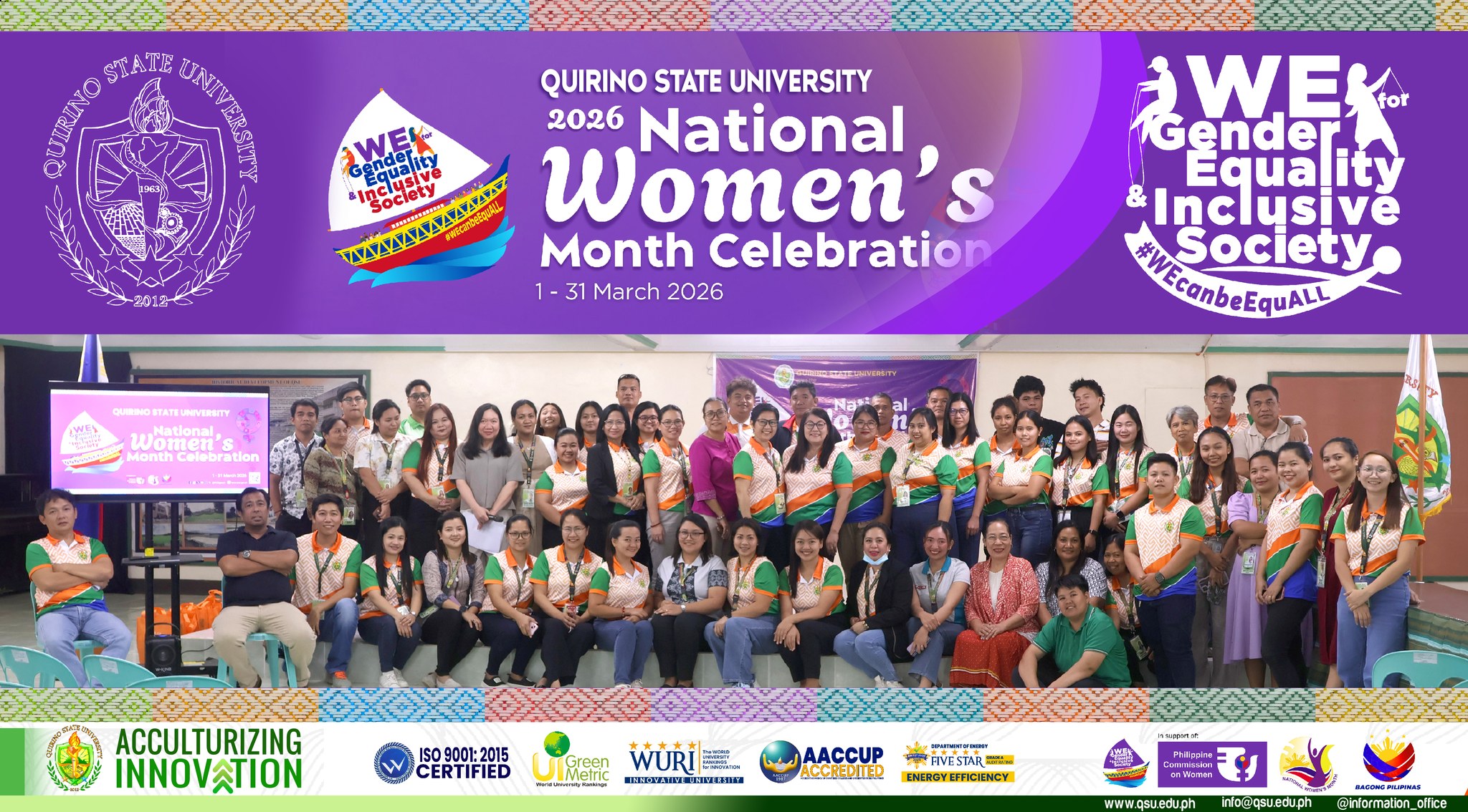 The University celebrated the National Women’s Month across its three campuses, yesterday, March 23. With the theme “WE for Gender Equality and an Inclusive Society,” the two-part event was held virtually in the morning and onsite in the afternoon session. It featured the valuable contributions of women and reinforced the institution’s dedication to fostering a continue reading : 𝐐𝐒𝐔 𝐬𝐩𝐞𝐚𝐫𝐡𝐞𝐚𝐝𝐬 𝐠𝐞𝐧𝐝𝐞𝐫 𝐢𝐧𝐜𝐥𝐮𝐬𝐢𝐯𝐞 𝐢𝐧𝐢𝐭𝐢𝐚𝐭𝐢𝐯𝐞𝐬 𝐟𝐨𝐫 𝐍𝐚𝐭𝐢𝐨𝐧𝐚𝐥 𝐖𝐨𝐦𝐞𝐧’𝐬 𝐌𝐨𝐧𝐭𝐡 𝐂𝐞𝐥𝐞𝐛𝐫𝐚𝐭𝐢𝐨𝐧