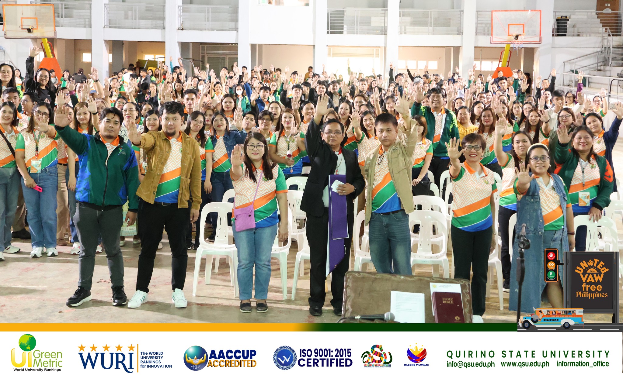Quirino State University combined advocacy with celebration yesterday, December 17, as it concluded the 18-Day Campaign to End Violence Against Women (VAW). Held at the Diffun Campus Gymnasium, the event integrated the campaignโs closing ceremonies into the Universityโs annual year-end celebration. The event commenced with a Holy Mass to bless the occasion. Rev. Noel M. continue reading : ๐๐๐ ๐ฎ๐ง๐ข๐ญ๐๐ฌ ๐๐จ๐ซ ๐๐ง๐ ๐๐๐ ๐๐๐ฆ๐ฉ๐๐ข๐ ๐ง ๐๐ฎ๐ฆ ๐ฒ๐๐๐ซ-๐๐ง๐ ๐๐๐ฅ๐๐๐ซ๐๐ญ๐ข๐จ๐ง