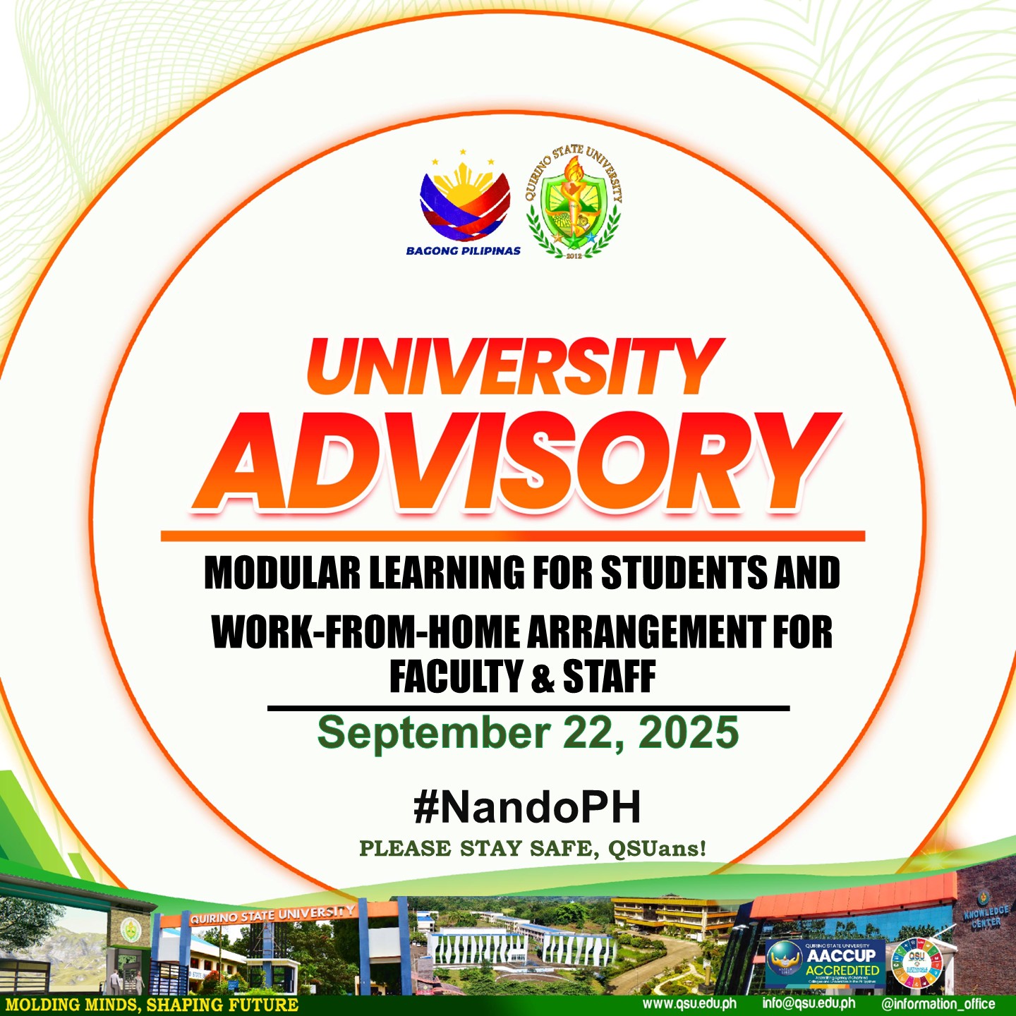 Pursuant to the Tropical Cyclone Bulletin No. 15 issued by the Philippine Atmospheric, Geophysical and Astronomical Services Administration (PAGASA) at 11:00 AM today, 21 September 2025, which provides a warning on the anticipated danger posed by Super Typhoon “Nando” (Ragasa), and in line with Memorandum Circular No. 96 from the Office of the Philippine President continue reading : ๐๐๐๐๐๐๐๐๐๐๐๐ ๐ ๐๐๐ ๐๐๐ ๐๐ ๐ ๐๐๐ ๐๐ ๐๐๐ ๐๐๐๐๐๐๐๐๐๐ ๐๐๐๐๐๐๐๐๐