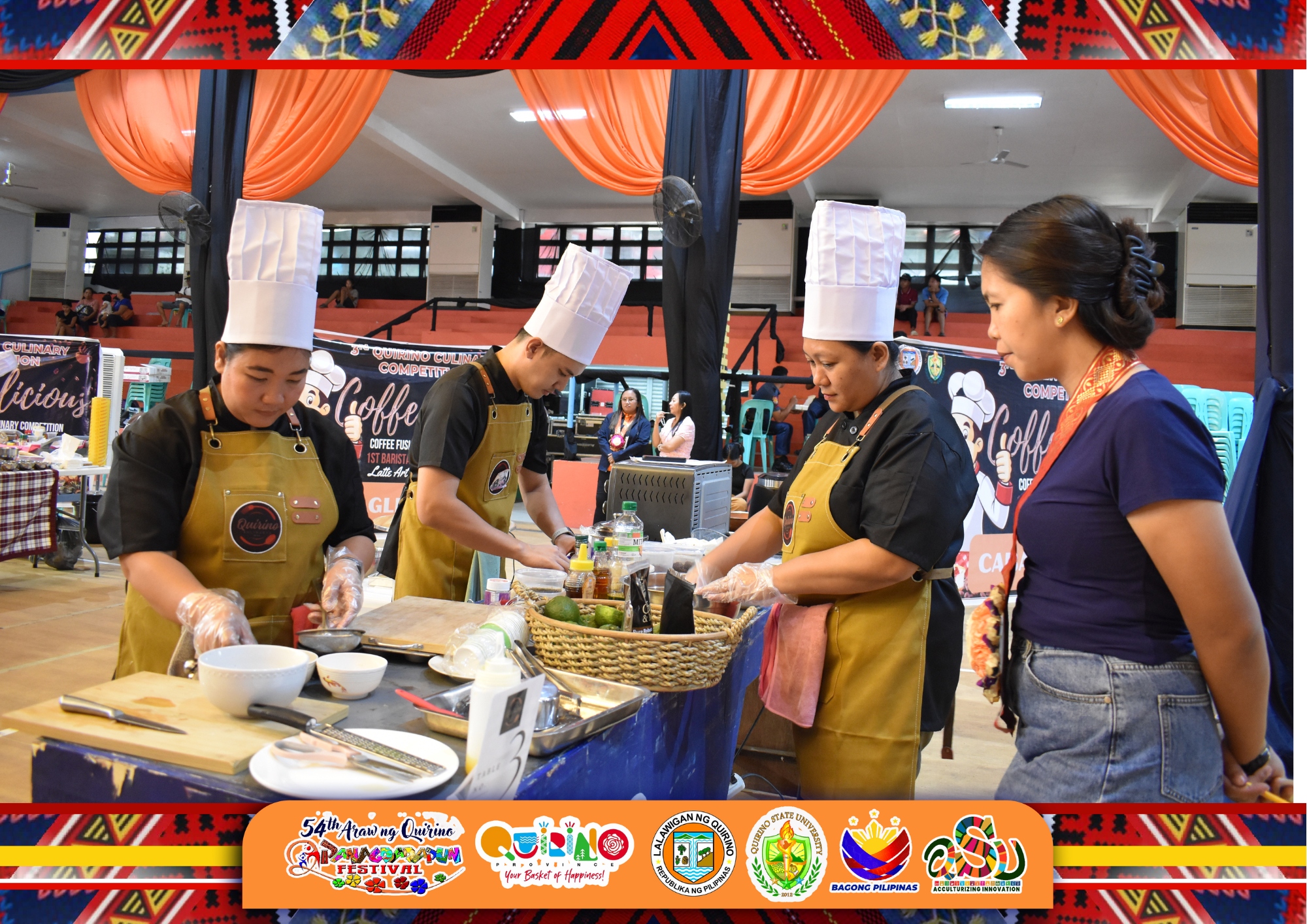 The PGQ collaborated with Quirino State University (QSU), led of Dr. Hermenegildo F. Samoy, Jr., President, to hold this year’s culinary showdown, titled “Quirino Coffee Fusion Culinary and 1st Barista Latte Art Competition.” As a featured activity for the Panagdadapun 2025 Celebration, the event was expertly facilitated by Prof. Jonathan N. Tariga, CHTM Program Chairperson and Competition Committee Head, and Ms. Aurea V. Martinez, Provincial Tourism Officer. They worked in close coordination with Ms. Carmelita B. Jimenez, Provincial Administrator.