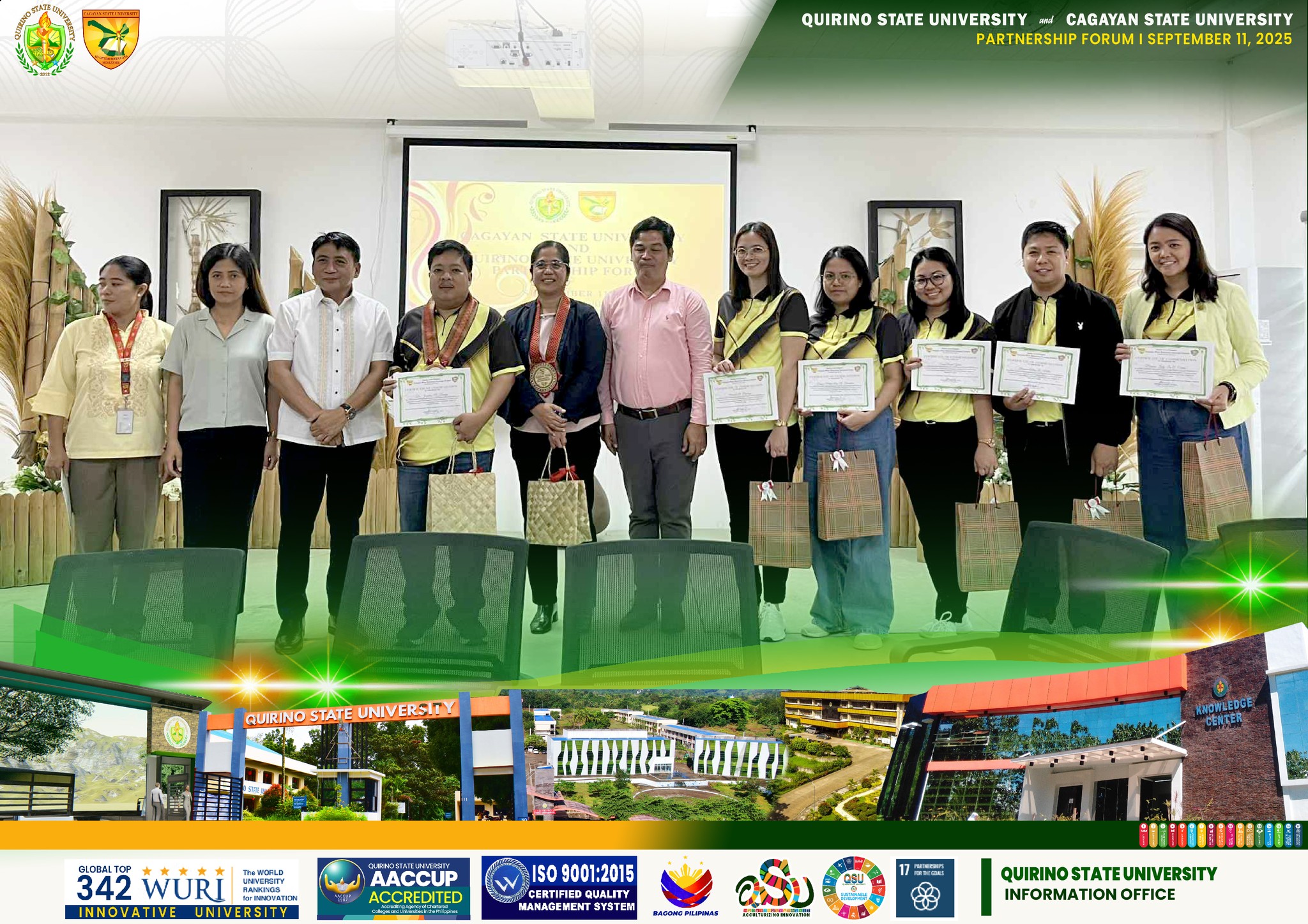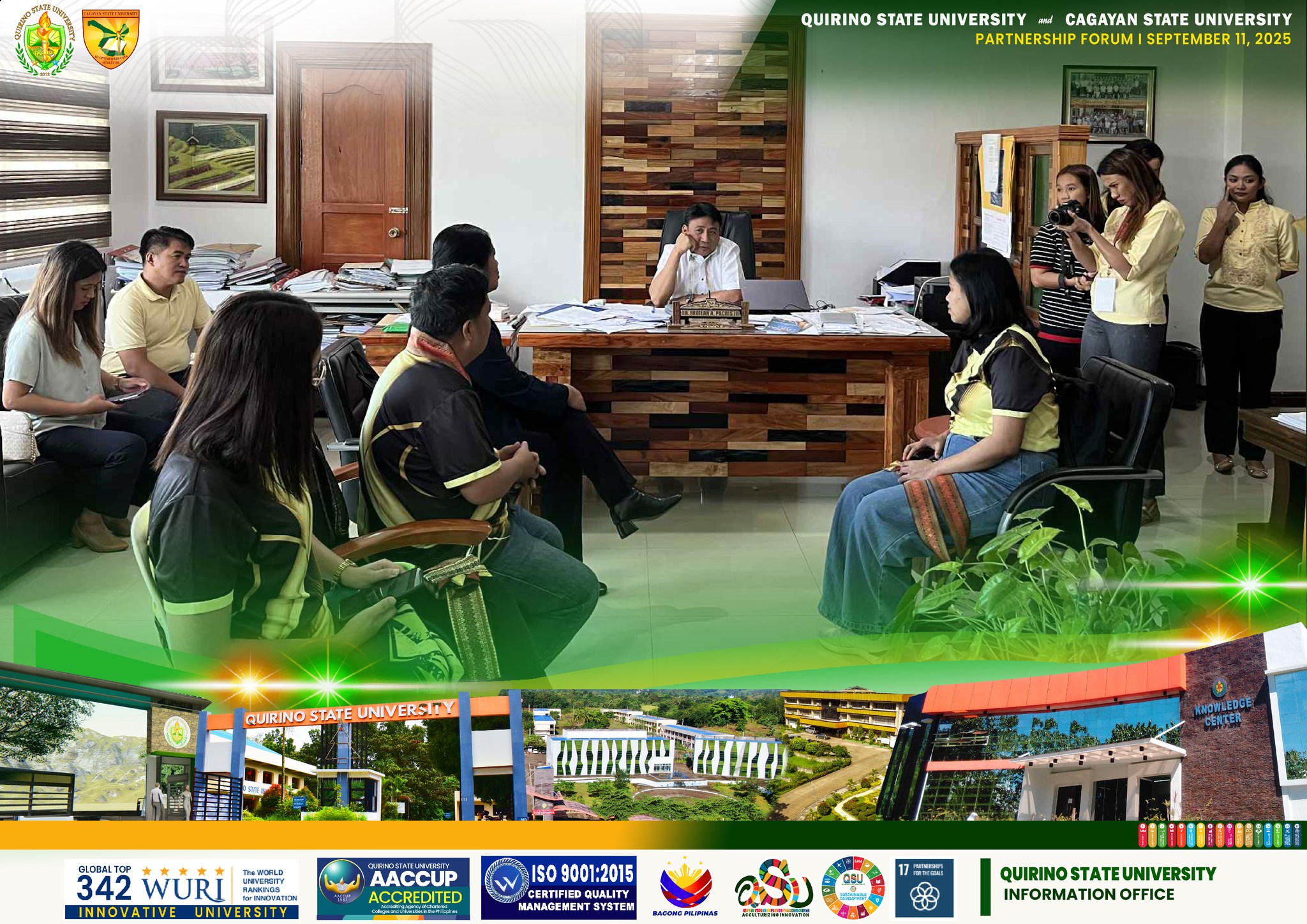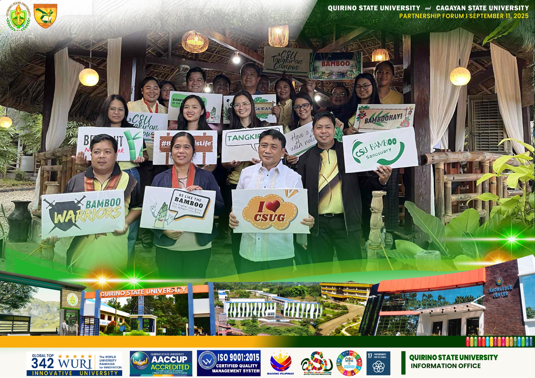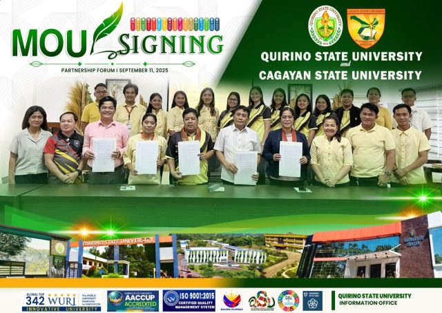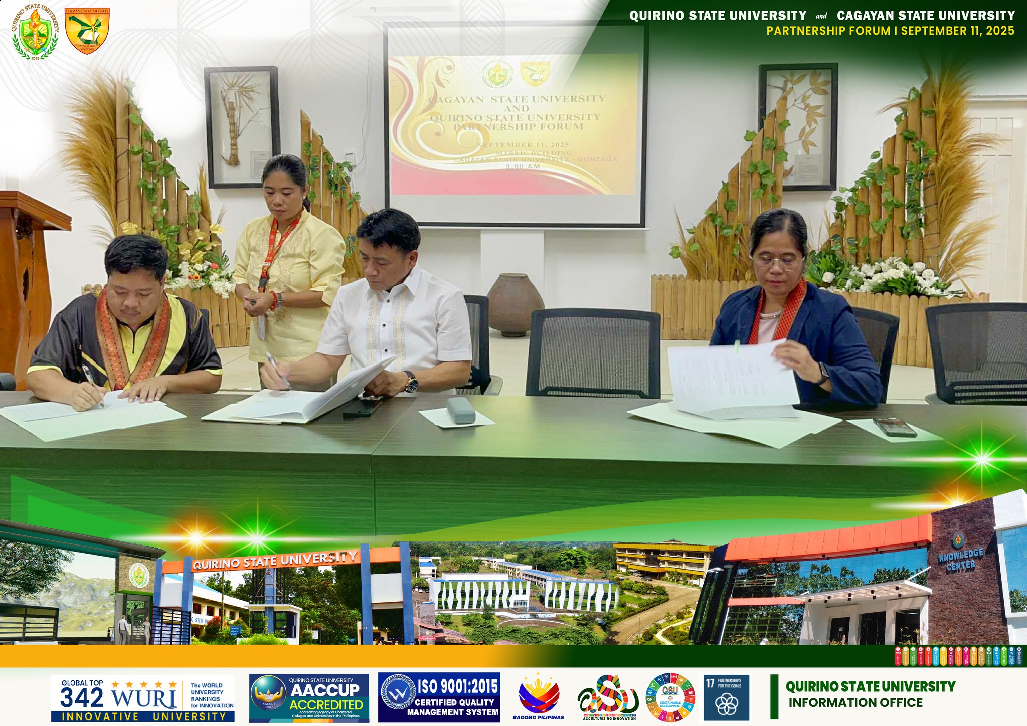 The Quirino State University (QSU) and Cagayan State University (CSU) formalized a partnership on September 11, 2025, during a forum held at CSU Gonzaga Campus. The event aims to foster collaboration in research, development, and extension initiatives.