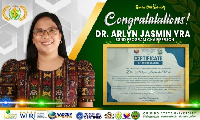 Rounding out the four major accolades, Dr. Arlyn J. Yra, Program Chairperson, was recognized with a Certificate of Commendation for her exceptional contributions to health and wellness in the district. Her leadership was instrumental in formulating the Municipal Wellness Policy and developing the official campaign jingle, โTamang Nutrisyon, Tamang Galaw,โ which has become a cornerstone of the regionโs advocacy for active living. These stellar accomplishments reflect the BSND programโs initiatives to research and community engagement, inspiring the community to pursue knowledge that makes a tangible difference as they continue to ARISE.