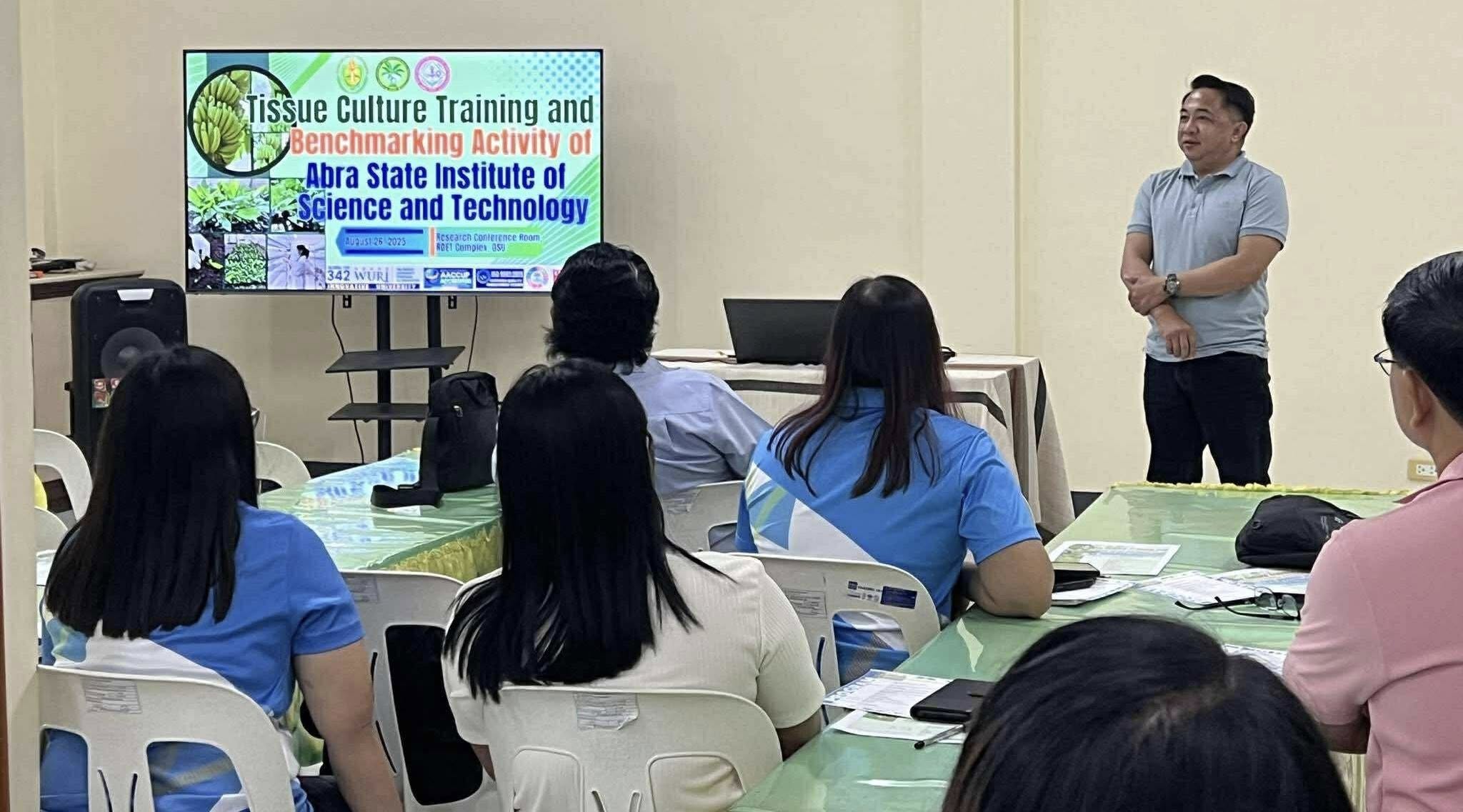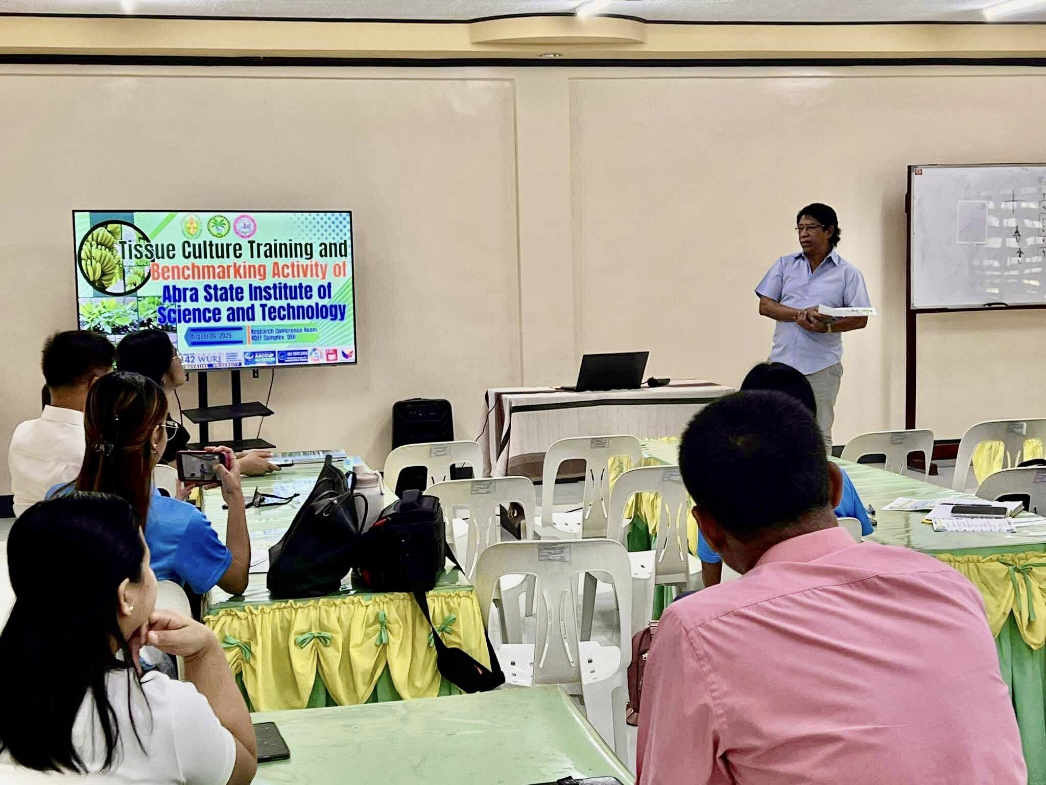 The University welcomed delegates from Abra State Institute of Science and Technology (ASIST) for a four-day Tissue Culture Training and Benchmarking Activity, which started yesterday, August 26, 2025 at the Research Conference Room, RDET Complex, QSU. The event was spearheaded by the Banana Research and Development Center (BRRDC) as part of its continuing efforts to strengthen research, development, and extension collaborations among higher education institutions.