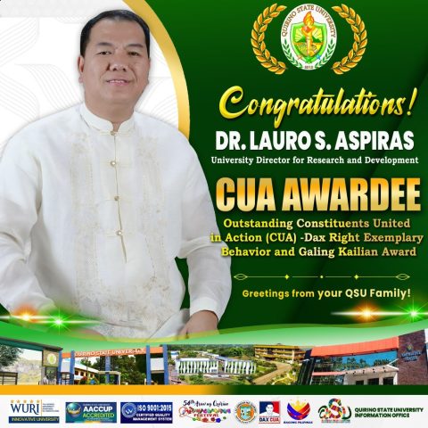 Moreover, Mr. Jaymark R. Castillo of Diffun Campus, Mr. Hernan Cedrick H. Gamet of Cabarroguis Campus, and Ms. Maureen Kate R. Caguin of Maddela Campus were bestowed with the Dakilang Pamana Award. The award recognizes their outstanding leadership and significant contributions to their school or community. It is a symbol of Governor Dakila Carlo E. Cua’s remarkable leadership and legacy.