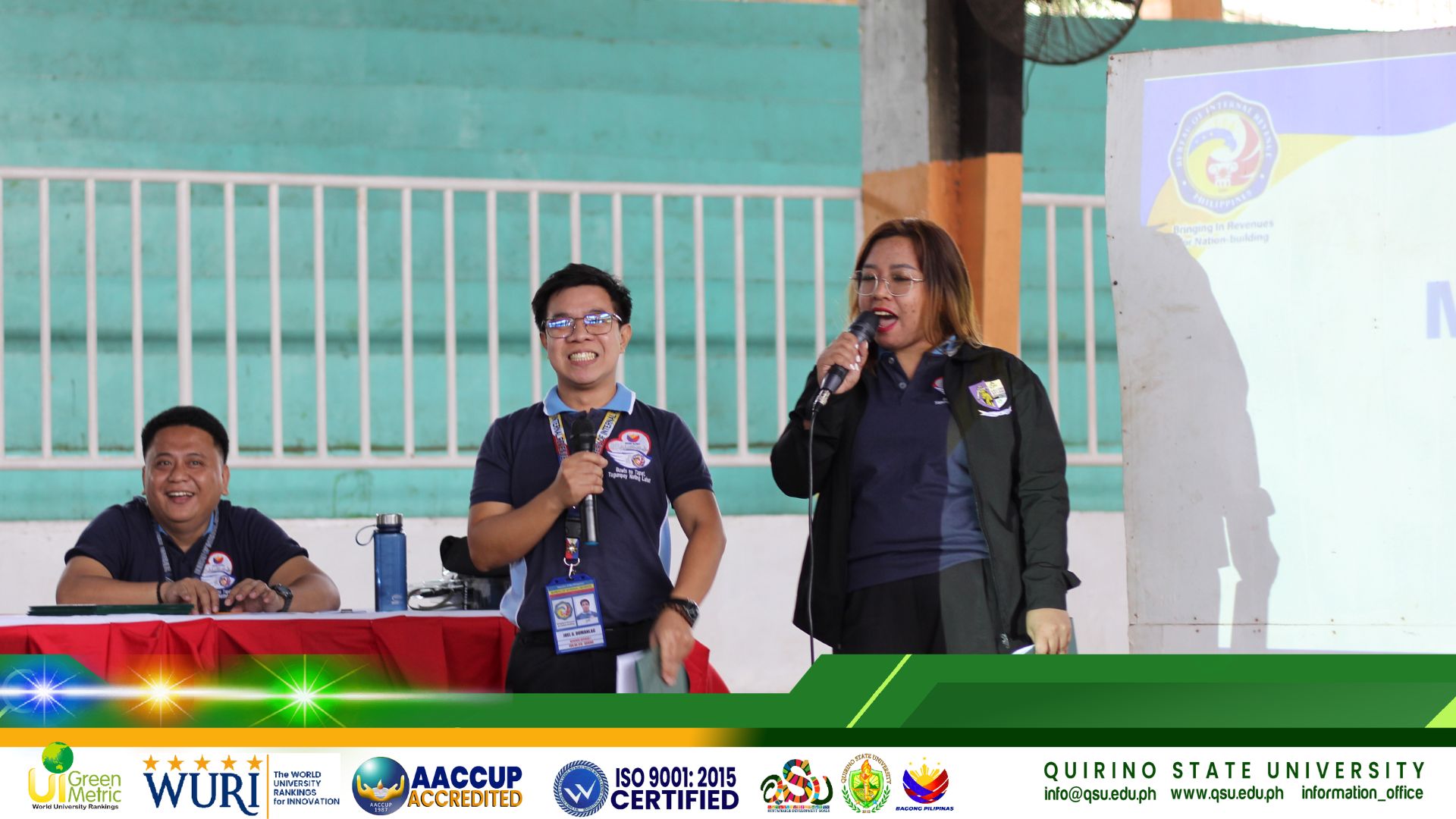 In observance of the Tax Awareness Month, Quirino State University joined the Bureau of Internal Revenue (BIR) RDO 16 for its District Tax Campaign today, March 2, at the Delfin Vaquilar Gymnasium in Diffun.
