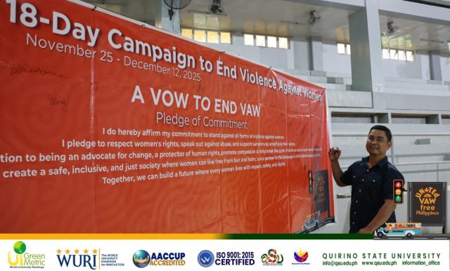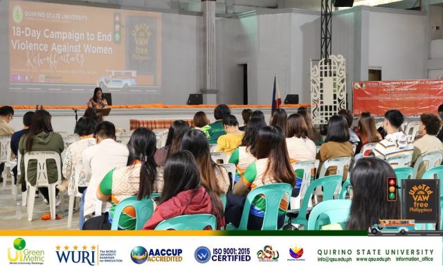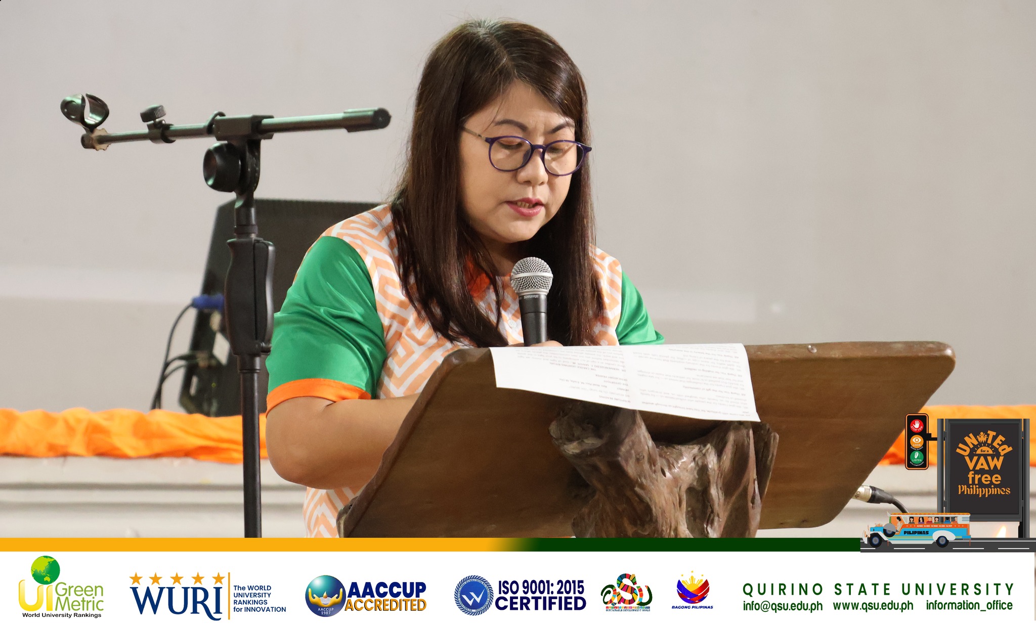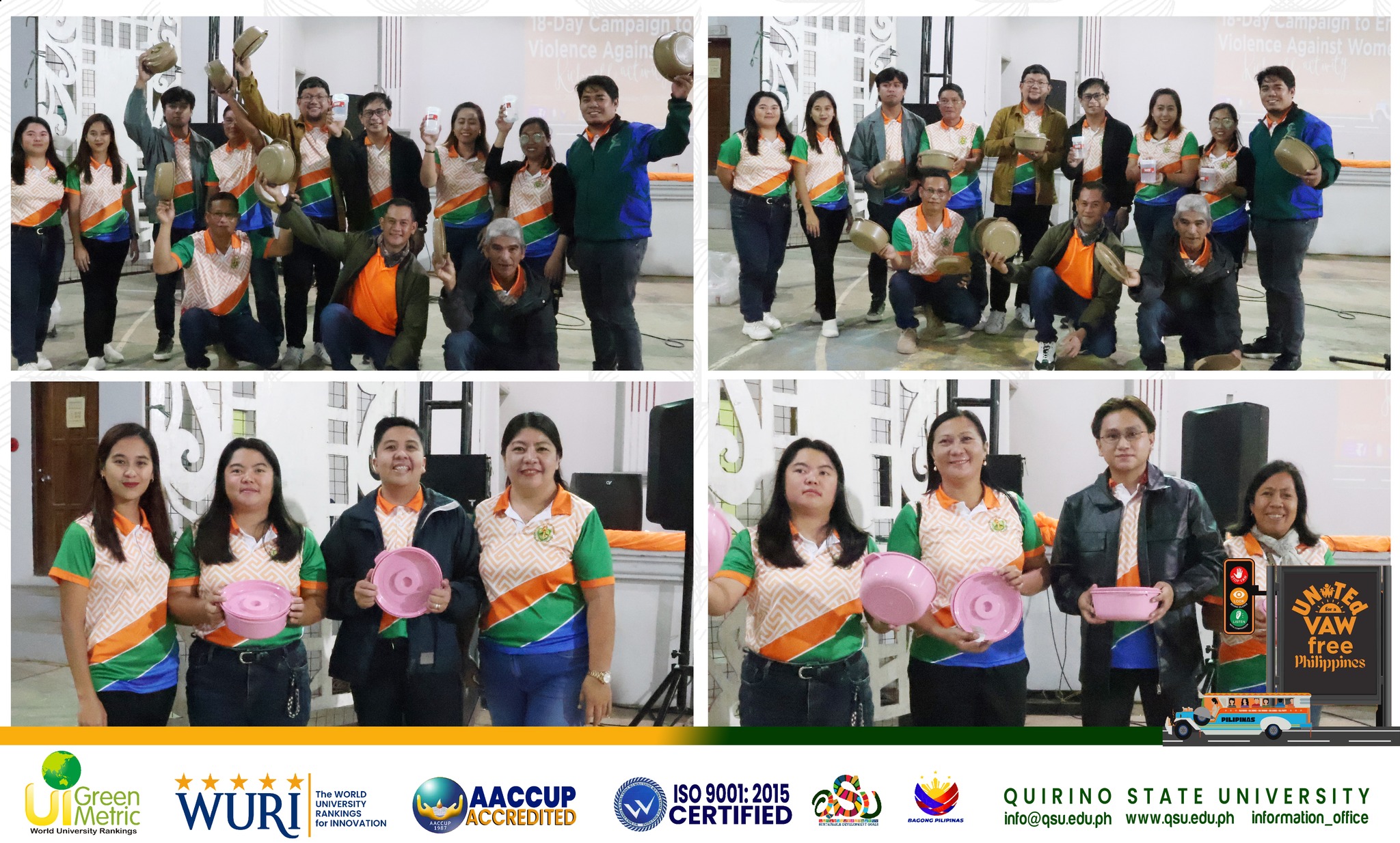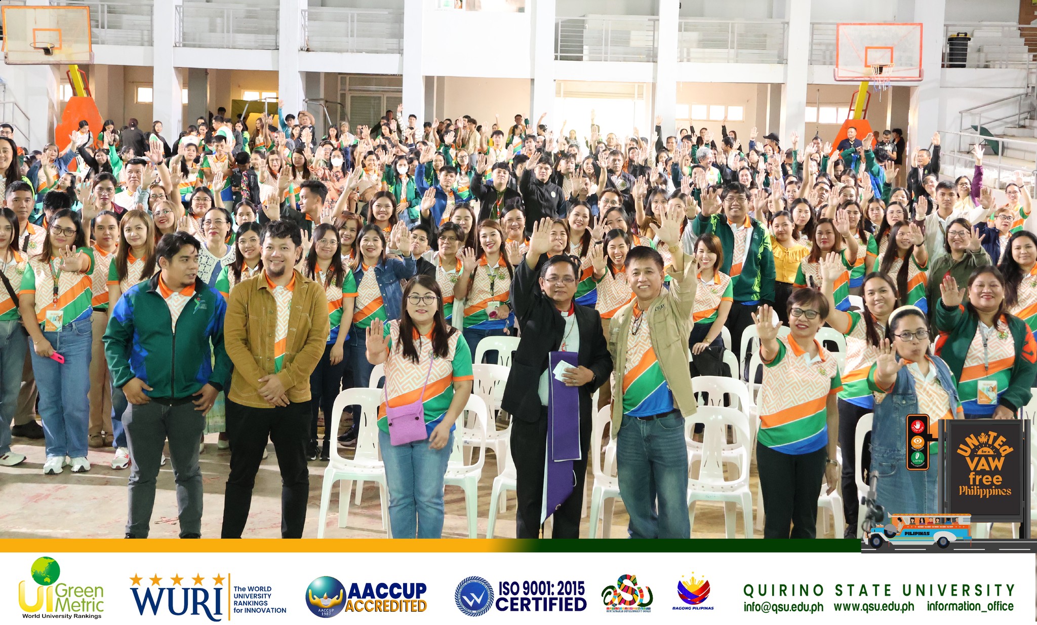 Quirino State University combined advocacy with celebration yesterday, December 17, as it concluded the 18-Day Campaign to End Violence Against Women (VAW). Held at the Diffun Campus Gymnasium, the event integrated the campaign’s closing ceremonies into the University’s annual year-end celebration.