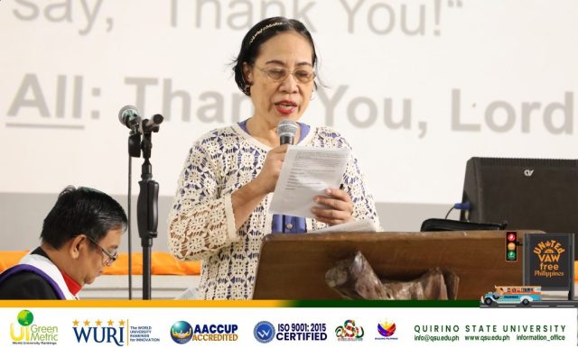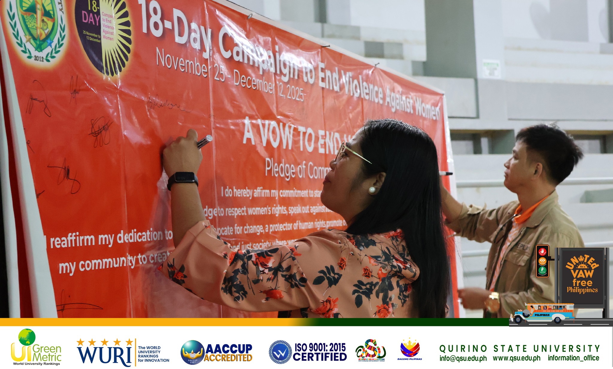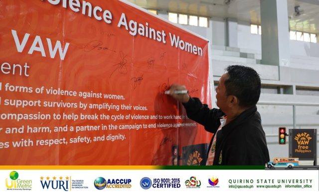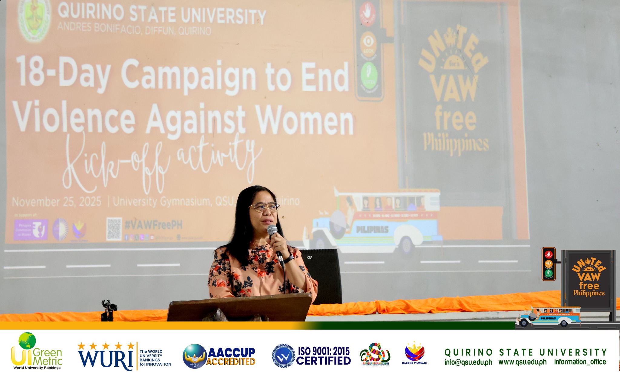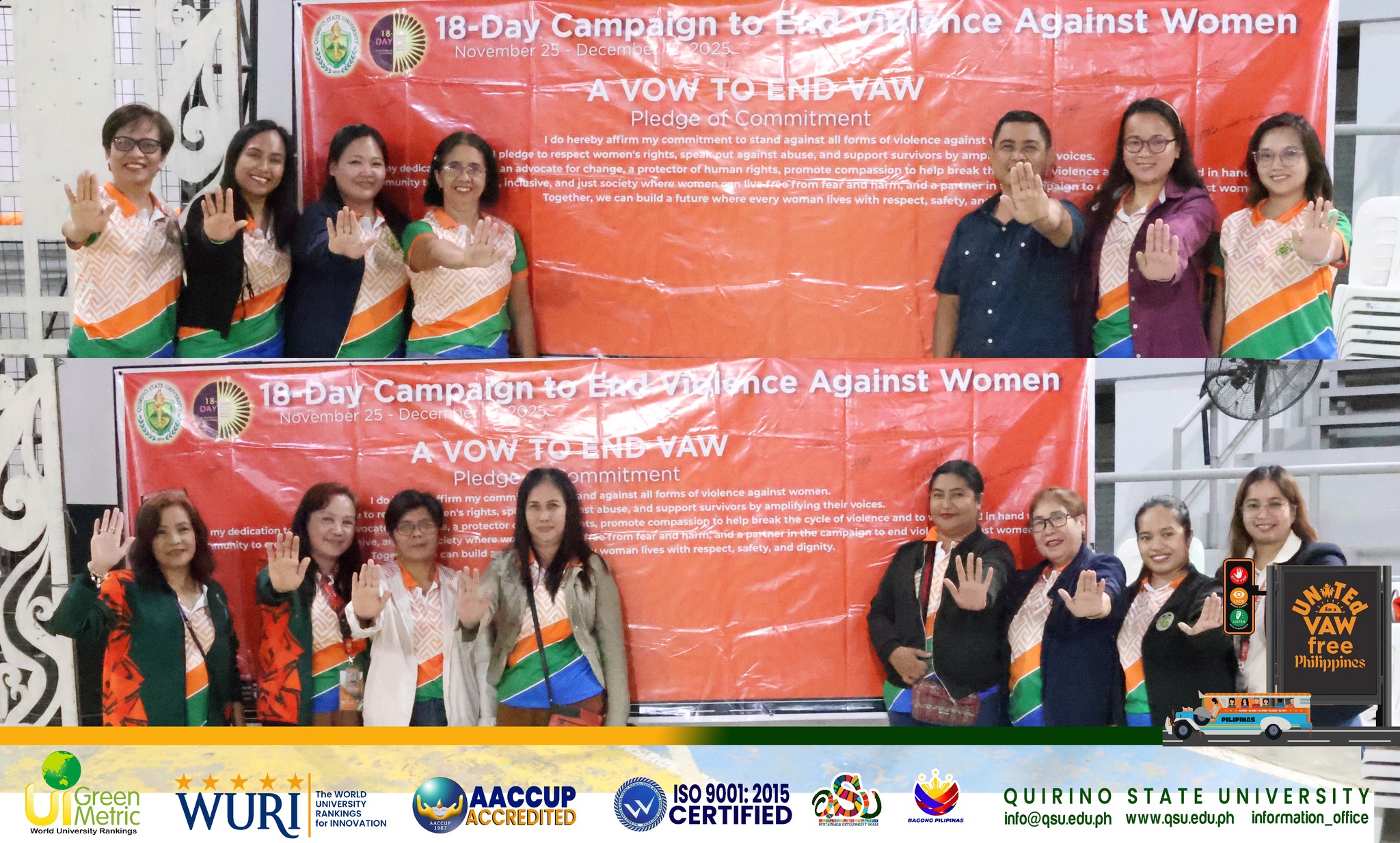 Quirino State University combined advocacy with celebration yesterday, December 17, as it concluded the 18-Day Campaign to End Violence Against Women (VAW). Held at the Diffun Campus Gymnasium, the event integrated the campaign’s closing ceremonies into the University’s annual year-end celebration.